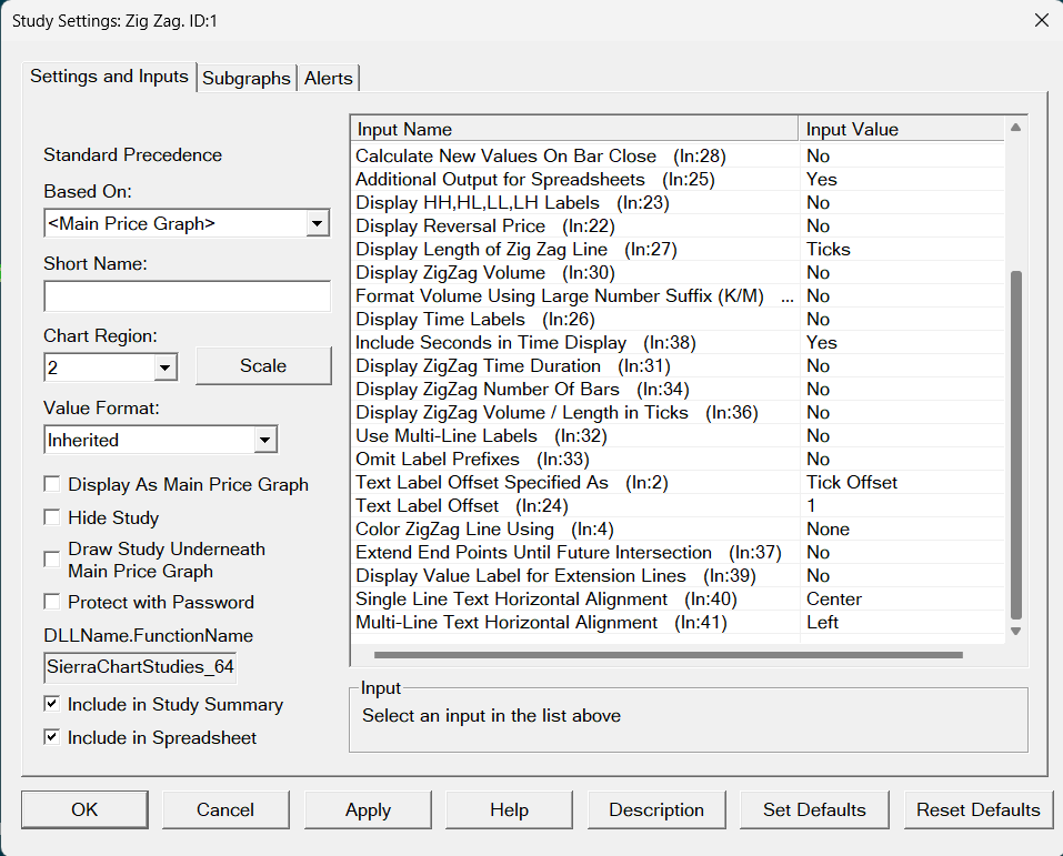 Refer to the following Input for the Spreadsheet Study: Spreadsheet Study Inputs: Do Not Output Subgraphs Set To Ignore For the most reliable, advanced, and zero cost futures order routing, use the Teton service: Sierra Chart Teton Futures Order Routing |