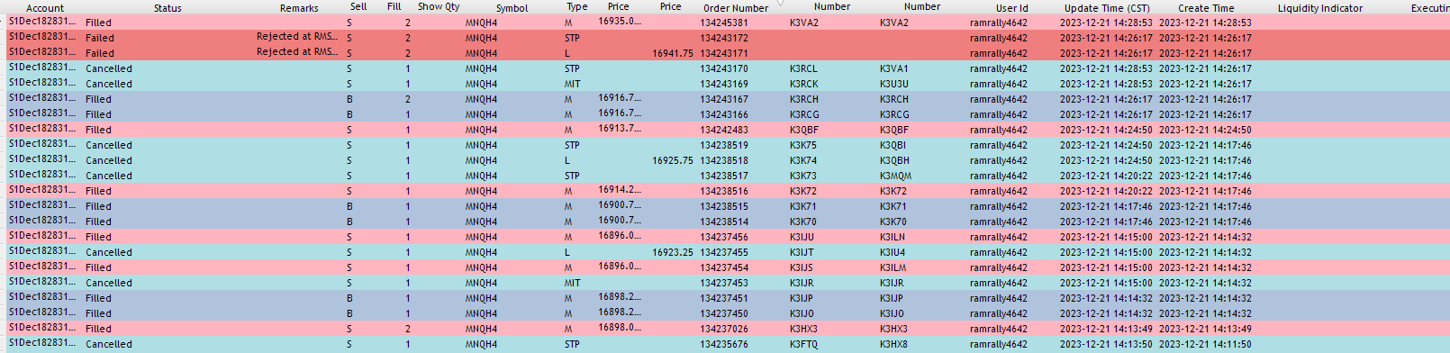 MNQ I uploaded a few things. The (2 - one exited 16913 Bracket pair - the one at 15:17 entered at 16900 is one of the first entries, got out at 16924, my entry after placing the 2nd at 16916 moved up to 16912. That $46.50 closed much less right before I entered that 2nd the TP profit was at $89. I feel like this screwed me over. Moved my entry way above half point and took my profit down. Entering another position was pointless and put me at more risk lessening profit and moving entry so high. |