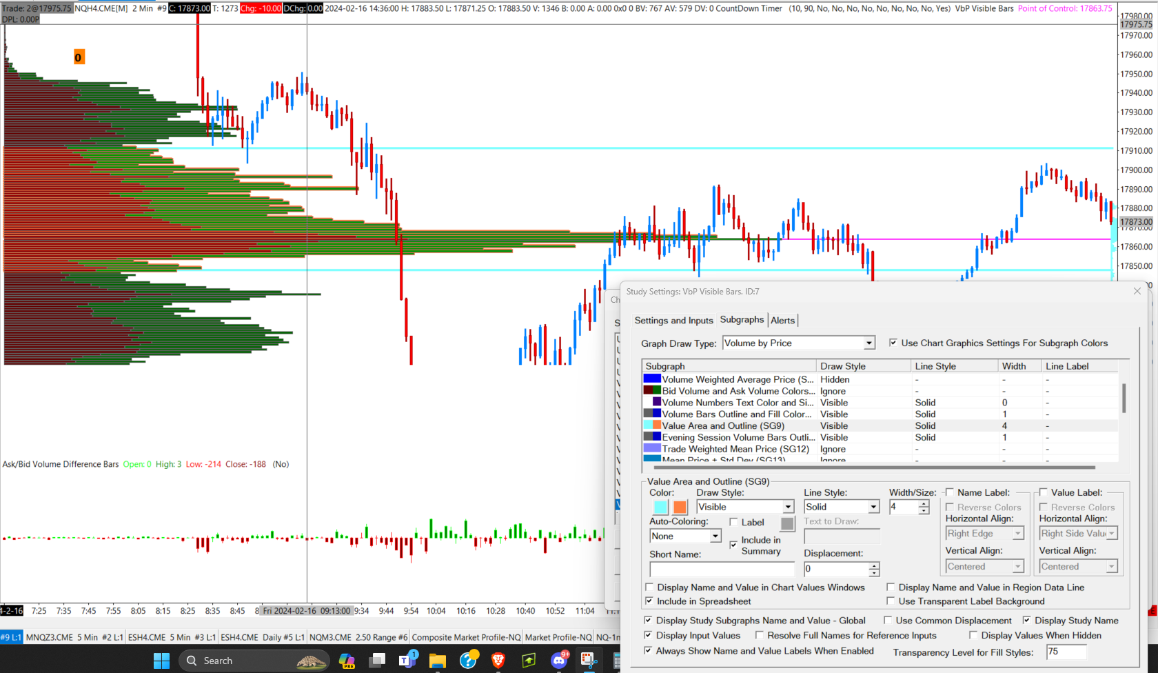 I have the same issue. The Primary Color setting for SG9 should fill the Value Area does not fill the profile. It provides a line out similar to the POC that basically shows the high and low of the Value Area (cyan color). The secondary color does outline the value area as it should, but I don't want that at all (Orange color). However, I want the value area to be filled. For some reason the red and green fill colors do not go away and I have no idea how to change those. All the subgraphs that show red and green colors are set to ignore. I attached a screenshot for you to see. I appreciate any help you can provide. Tom