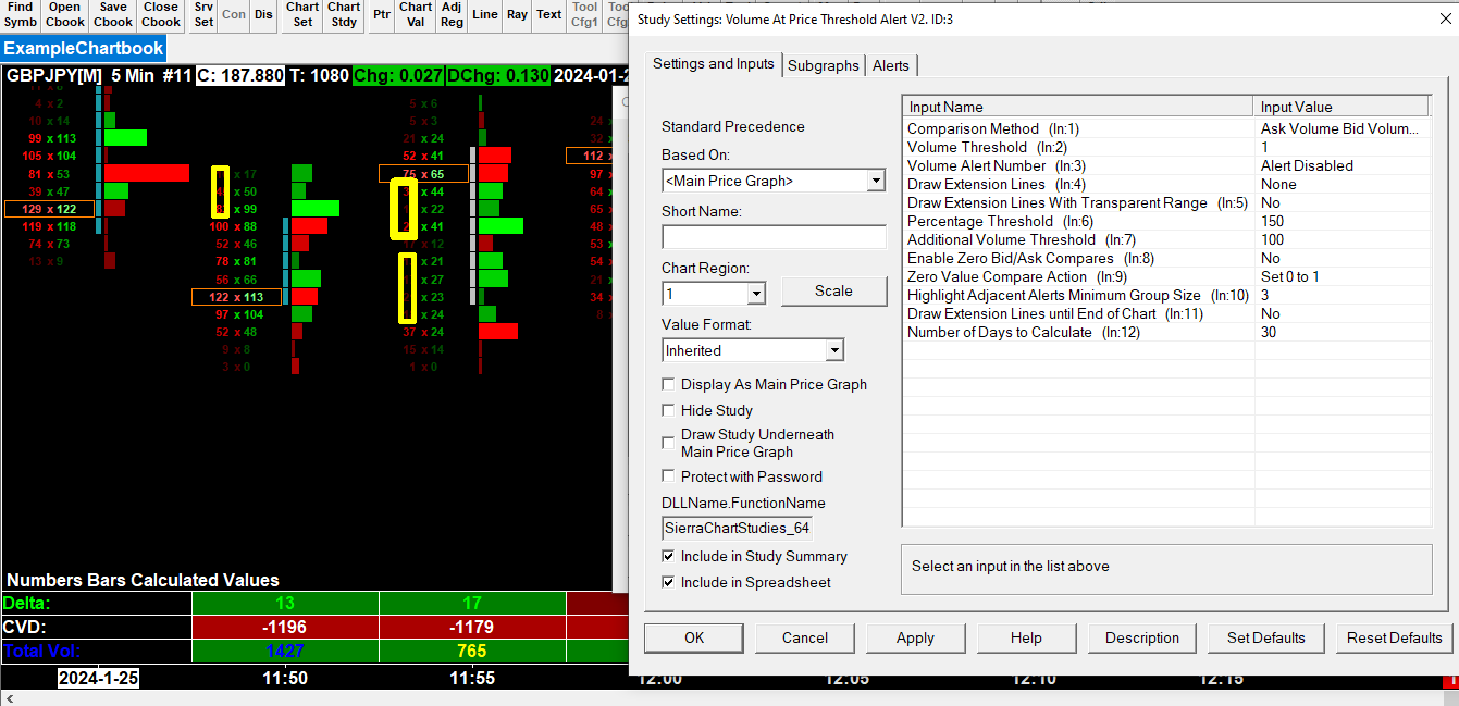 I figured out how to make the Vol at Price Threshold show up neatly, more less, but still can't make it show proper imbalance thresholds. The marker shows random imbalances, sometimes 300 %, sometimes 120%...sometimes from a group of stacked imbalances shown by the extension line, at times it doesn't show it at all