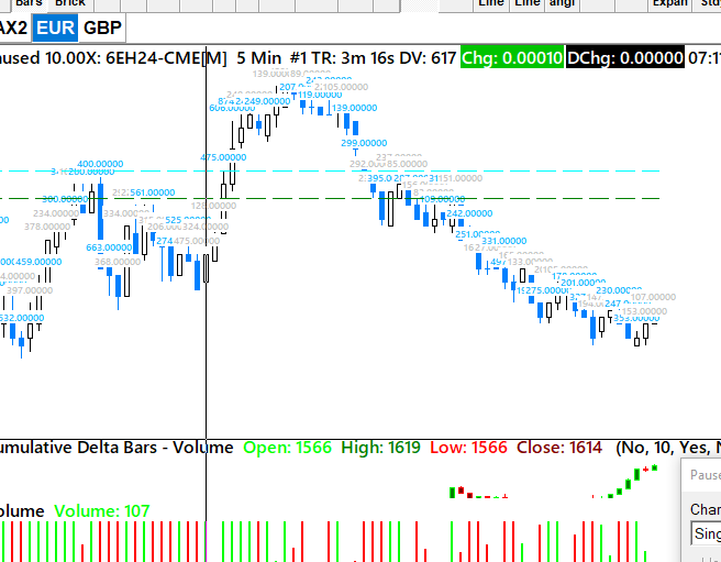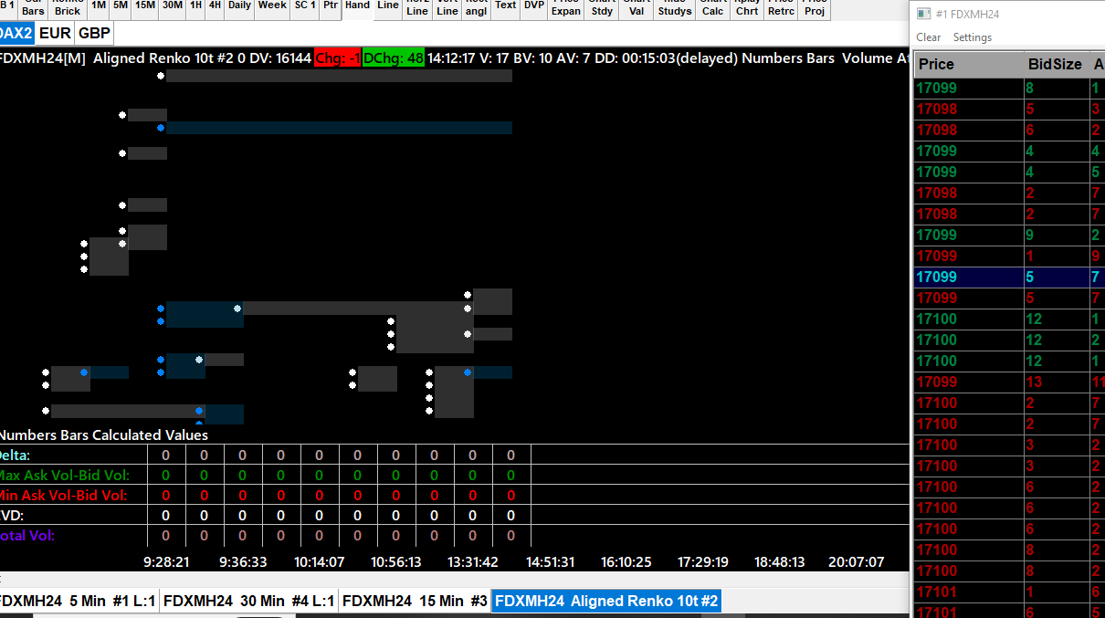 1.I just activated the Base package. I'm not sure if it's a relatable issue but my renko charts have dissapeared. I've set them up a month ago and used on daily basis. FDXM and MES just start with the empty chart, no numerical values. Screenshot attached. All graphics settings intact. Since there's no values , that's not the case anyway. The connection is there for other charts. 2.Can I make volume use big numbers on the labels over the candles? Screenshot attached 3. Why is the data so scarce for 6E/6B etc. for more than 6 months back ? Is it going to be better with Denali ? |