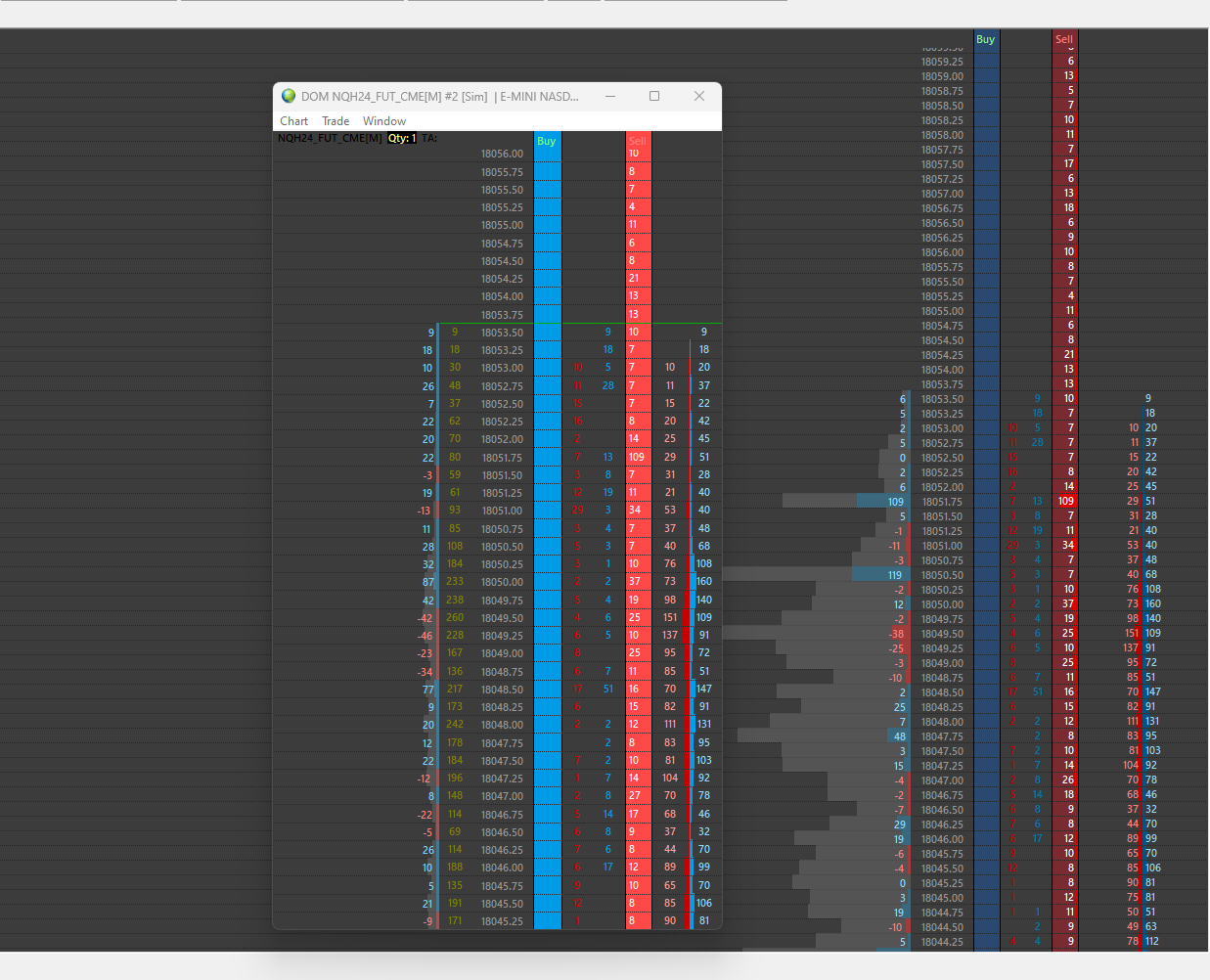Most likely this is due to the fact that you are using a "Trade and Current Quote Symbol", so you are probably viewing the data in the DOM for the MNQ and your Volume Profile is for the NQ. Refer to the following: Chart Settings: Trade and Current Quote Symbol (text box) (Chart >> Chart Settings >> Symbol >> Symbol menu) For the most reliable, advanced, and zero cost futures order routing, use the Teton service: Sierra Chart Teton Futures Order Routing |