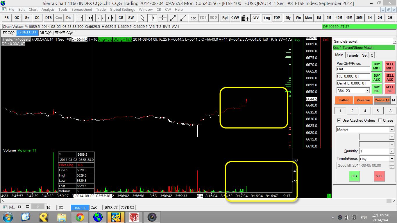 Thanks for help, soybean meal and soybean oil is okay now! The problem of F.US.QFAU14 chart is the wrong data time, as you can see in the 1 sec time frame, data time 09:17:34 happen before 09:16:34, Each time to get the correct chart ,I need to Delete all data & download again and again, because next new bar usually start at the wrong time. |