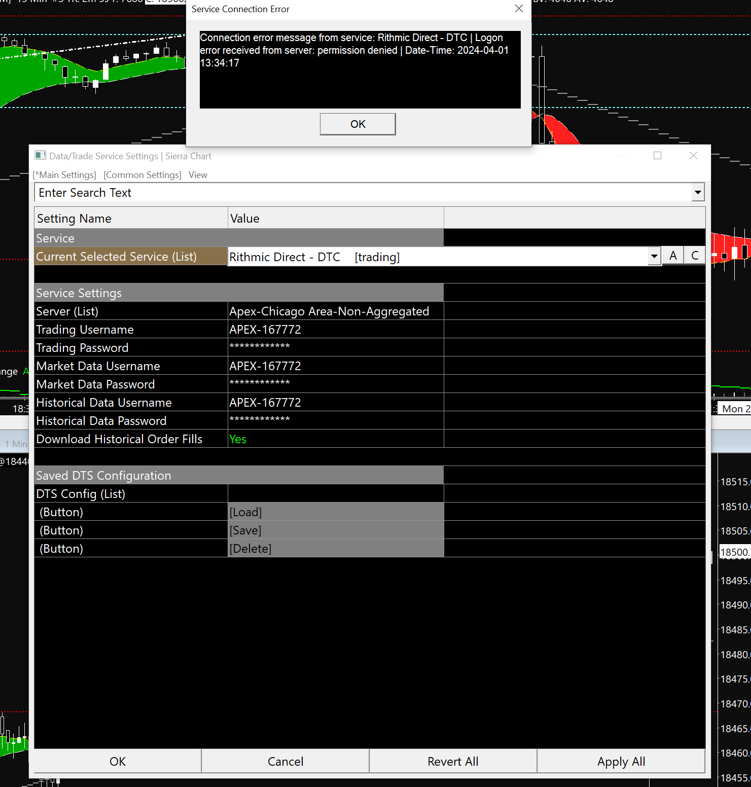 Problems connecting Apex to Sierra Charts