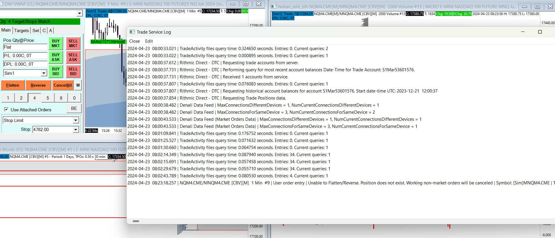 so as I saif it has 100% to do with the update, bc on my sierra 2 there is no issue at all. Whenever I open a market sim position it just wont open it. So I have no open PNL in the trade order window. If I try to flatten it I get the following log... Please see screenshot. Please tell me if you need further information for this bug/problem...