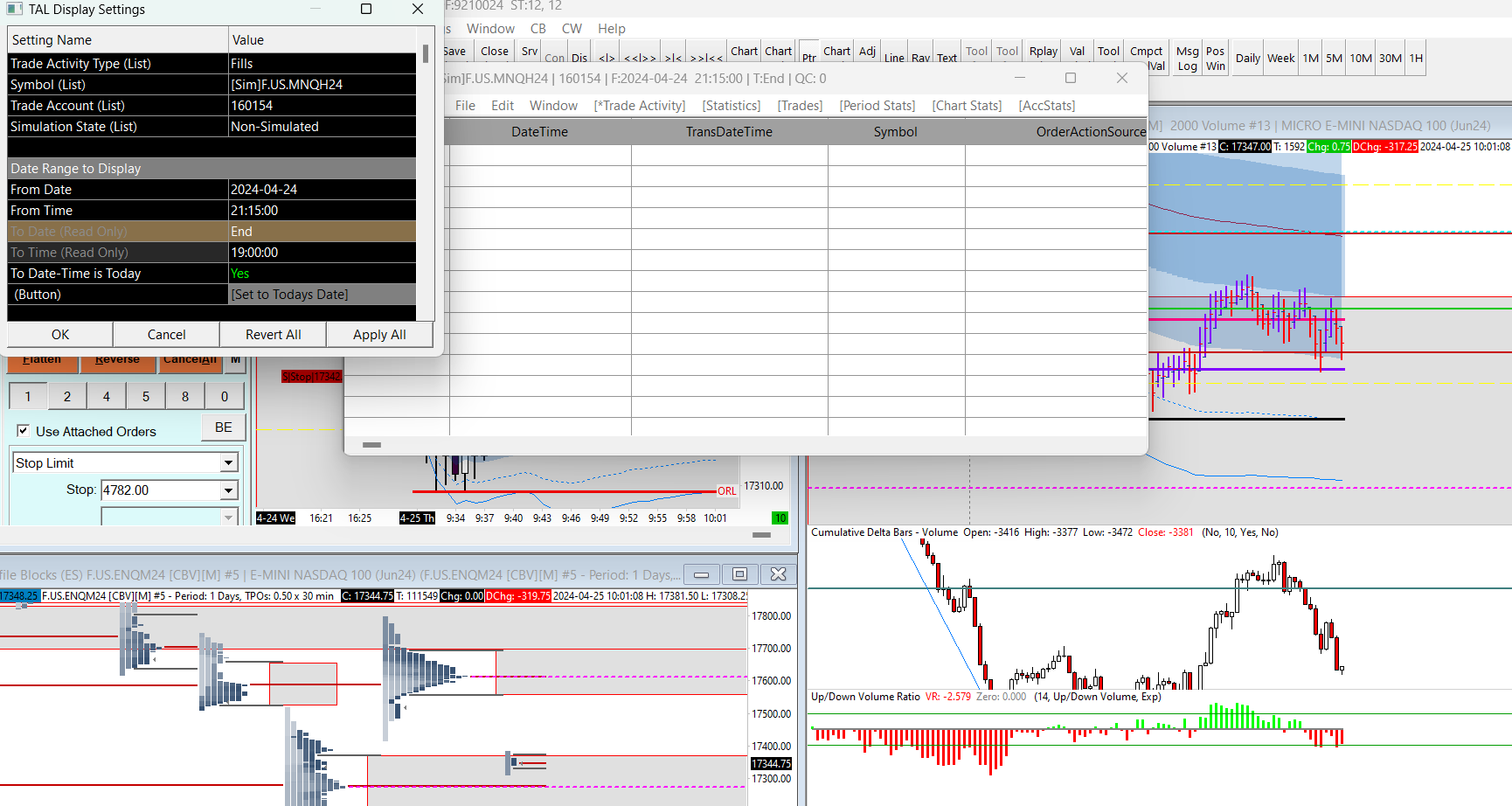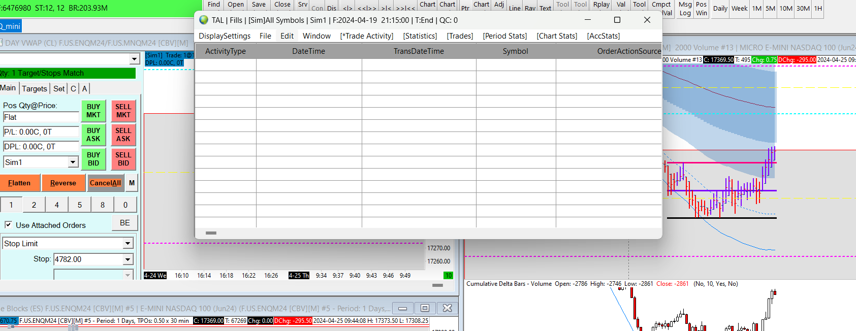 What exactly are you doing and what exactly is happening? The screenshot does not communicate any problem, regarding this.But what we do see from the screenshot, is that you do not have the right symbol selected on the Trade Activity Log. Select a specific symbol. Refer to: https://www.sierrachart.com/index.php?page=doc/Whats_New.php#SCVer2628 Sierra Chart Support - Engineering Level Your definitive source for support. Other responses are from users. Try to keep your questions brief and to the point. Be aware of support policy: https://www.sierrachart.com/index.php?l=PostingInformation.php#GeneralInformation For the most reliable, advanced, and zero cost futures order routing, use the Teton service: Sierra Chart Teton Futures Order Routing |