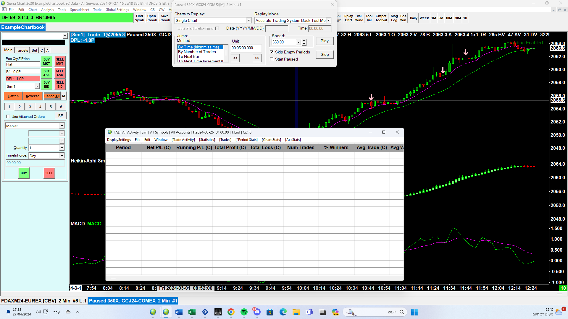 What is the date of the chart data that you are back testing and where fills are occurring?