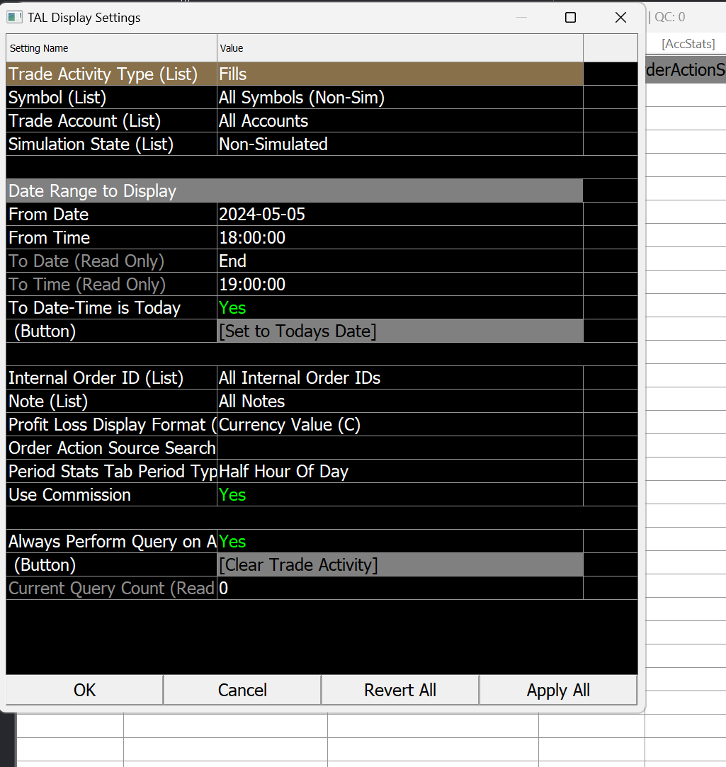 I just opened the TAL to export trades from the last 3 days. However, the TAL window is not populating. Attached are my settings. I did not clear any trades out, and I have trades from the past 3 days. I did update SC on Sunday or Monday, but I'm not seeing any trades at all, and I'm not seeing any from a few hours ago. What's up? This is something I routinely do and not sure what's wrong.