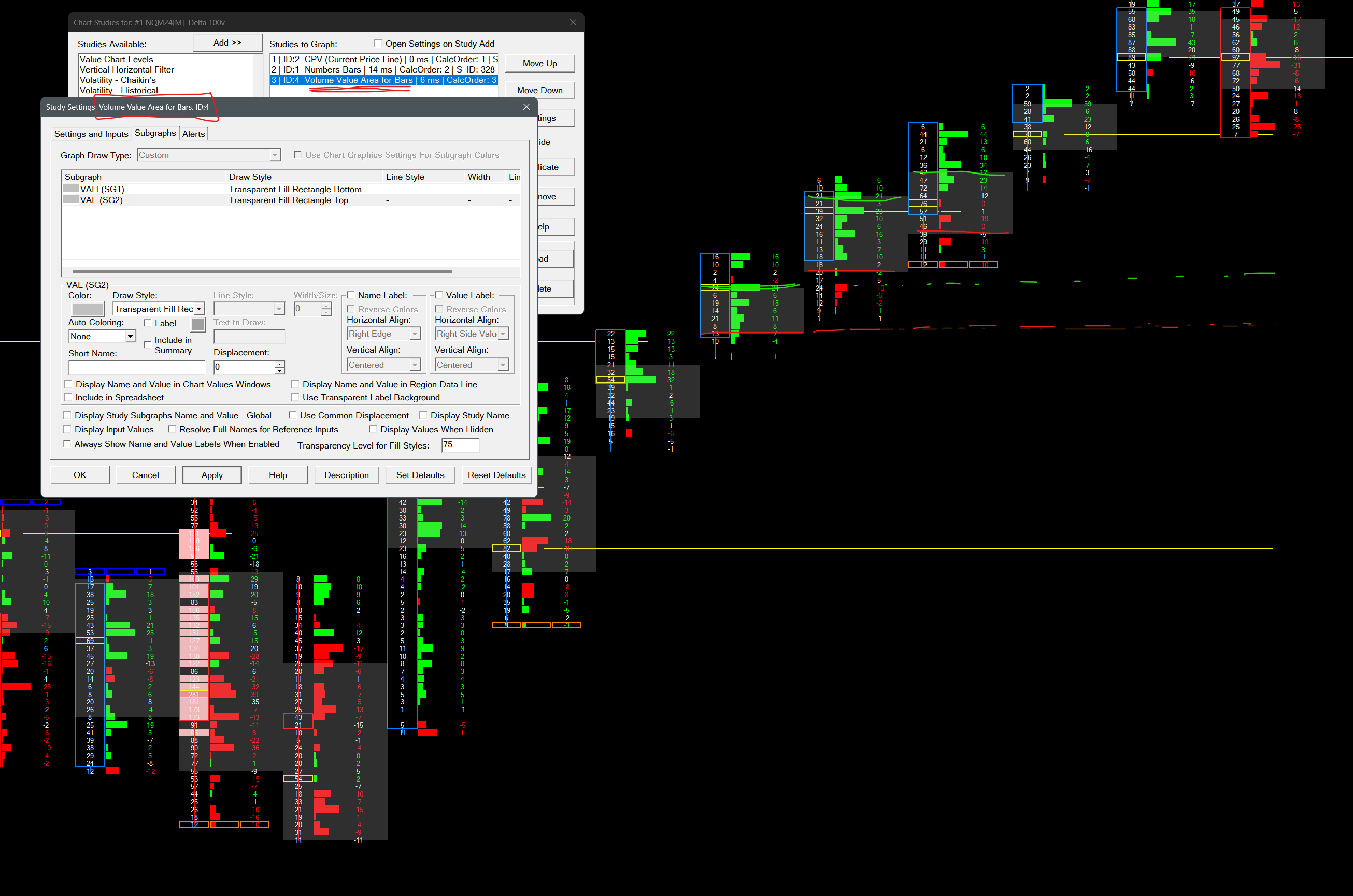 Hello dear SC, Please help, how do I display the Value Area using Numbers Bars exactly like the Volume Profile does? Much appreciated! |