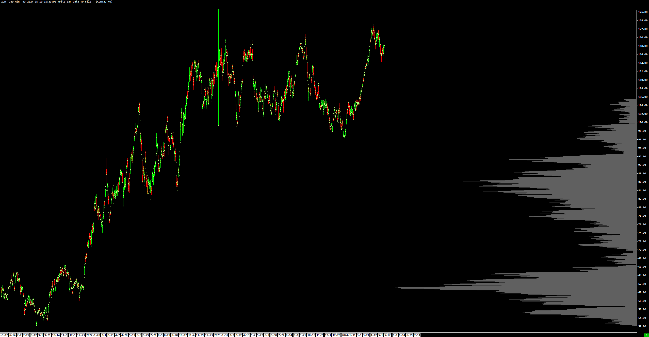 Please see attached. You'll notice the upper portion of the volume profile appears to be missing but it's because of the unusually large volume numbers that dominate the volume below. https://www.sierrachart.com/image.php?Image=1715369584161.png |