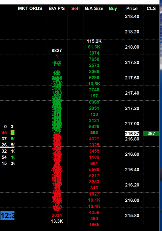 (pls see pic) The DOM shows data for B/A stacking and pulling, but it is overlapping - anyway to combine these? Also, no data in "sell" or "Buy" columns even when I take out the "Combined Bid/Ask Size" column, and no data in Market Orders Column. (pls see pic) Thx