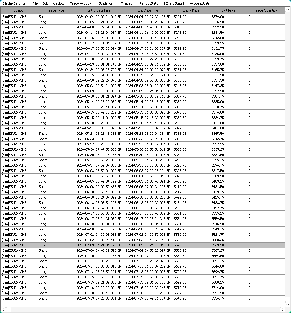 I noticed that some of my order fills are not being displayed on the chart, which is something that wasn't happening before. I attached two screenshots. The first screenshot shows a list of trades, wherein you can see there's a trade on 2024-07-03 and 2024-07-10. The trade on 2024-07-03 is NOT visible on the chart screenshot, as shown in the upper chart (#1). I annotated the chart to show where the entry/exit fills should have been. I copied chart #1, creating chart #2, to show that the trade on 2024-07-10 is visible on the chart. This is just an example. I can see the trades from 2024-07-10 to 2024-07-19 on the chart. But trades before 2024-07-10 are not visible. Note: I tried to upload the screenshots from within Sierra Chart, but the upload was blank; A solid black image. |