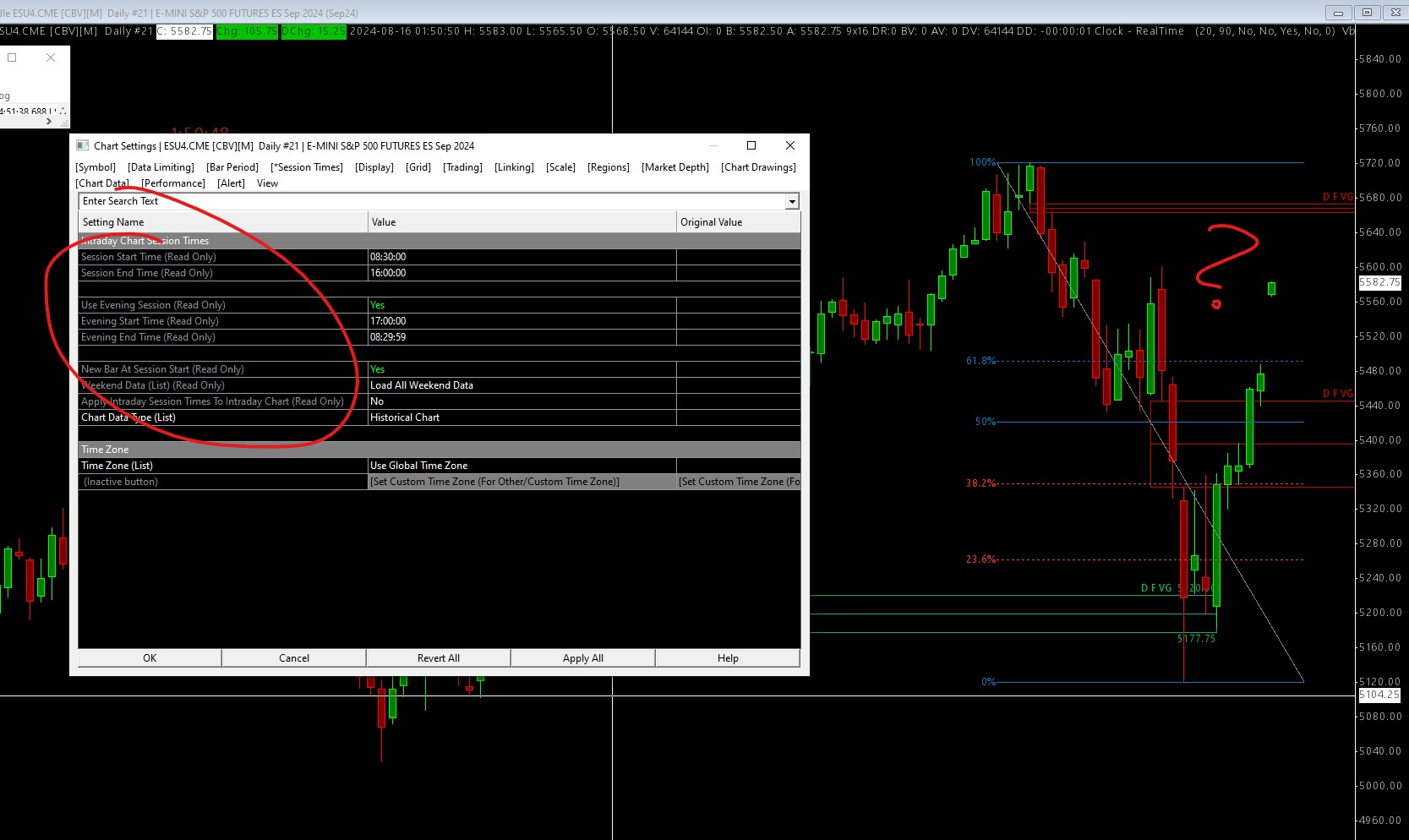 Hello, How can I change the session times on my Daily candle charts? The option is grey in the menu selection. Duplicating another chart/making a new chart is still greyed out. It's extremely annoying since the actual D chart looks completely different. Photos attached. thanks. |
