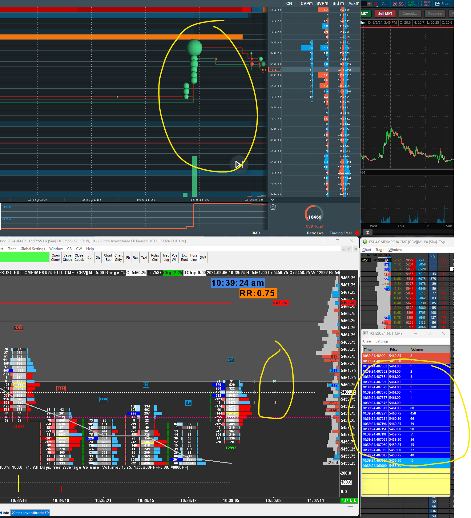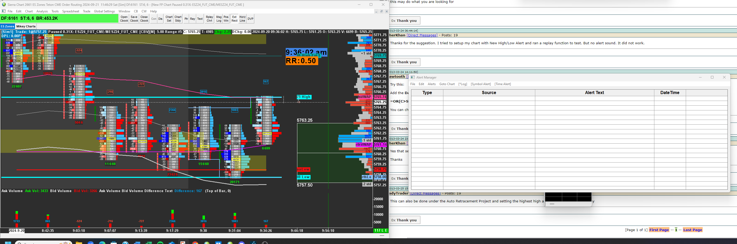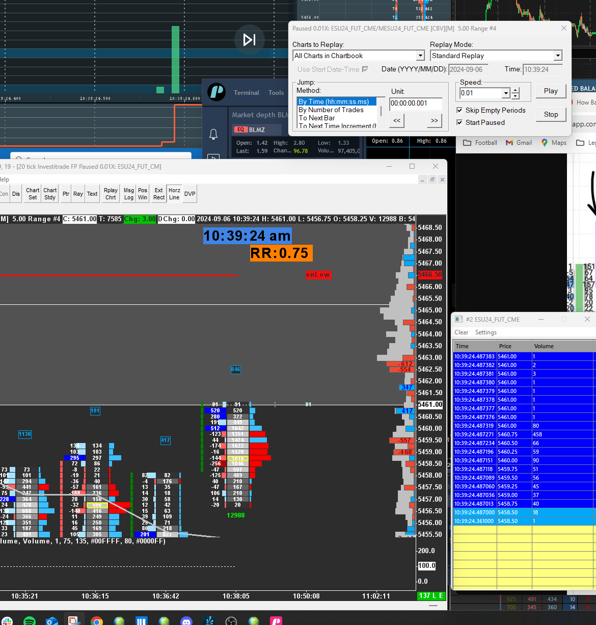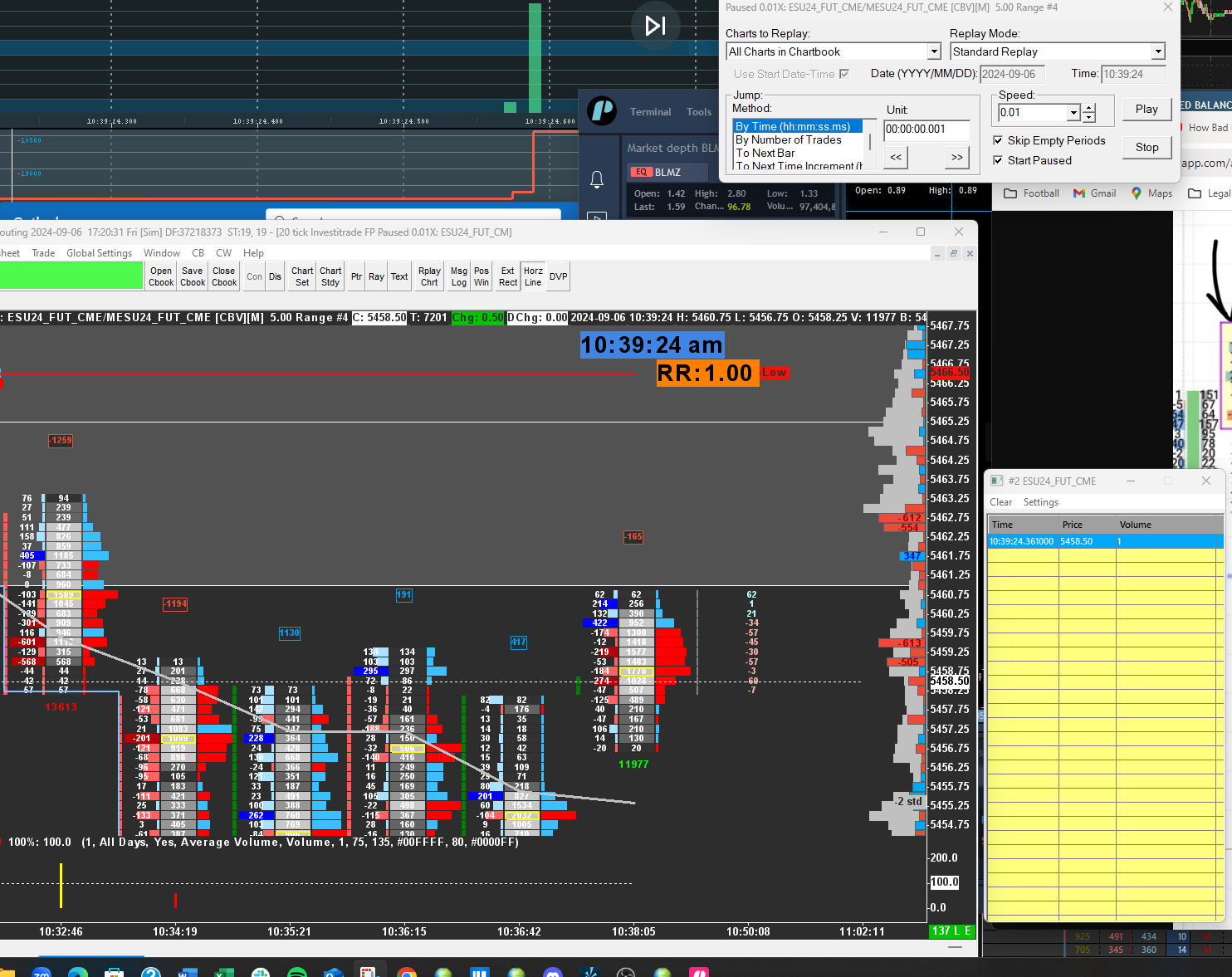 I am using the foot[rint chart in sc and have the pb column on ...is there a setting to define the pb amount????so for example today in the es there are two instances where the book was swept for large amounts yet the pb column does not reflect it..the times are 10:39:13.461 and 10:3:24.574...these were sweeps for over 500 contracts over roughly 3 or 4 points yet i could not see the net delta of those sweeps in the pb ...yes these sweeps did move up 3 points and then right back down...is there a way to capture these in the pb column...currenlty i can see them in BM...i also see it in time and sales yet not the pb column on fp chart attached please find a picture of the later time i am speaking about Date Time Of Last Edit: 2024-09-06 19:59:36