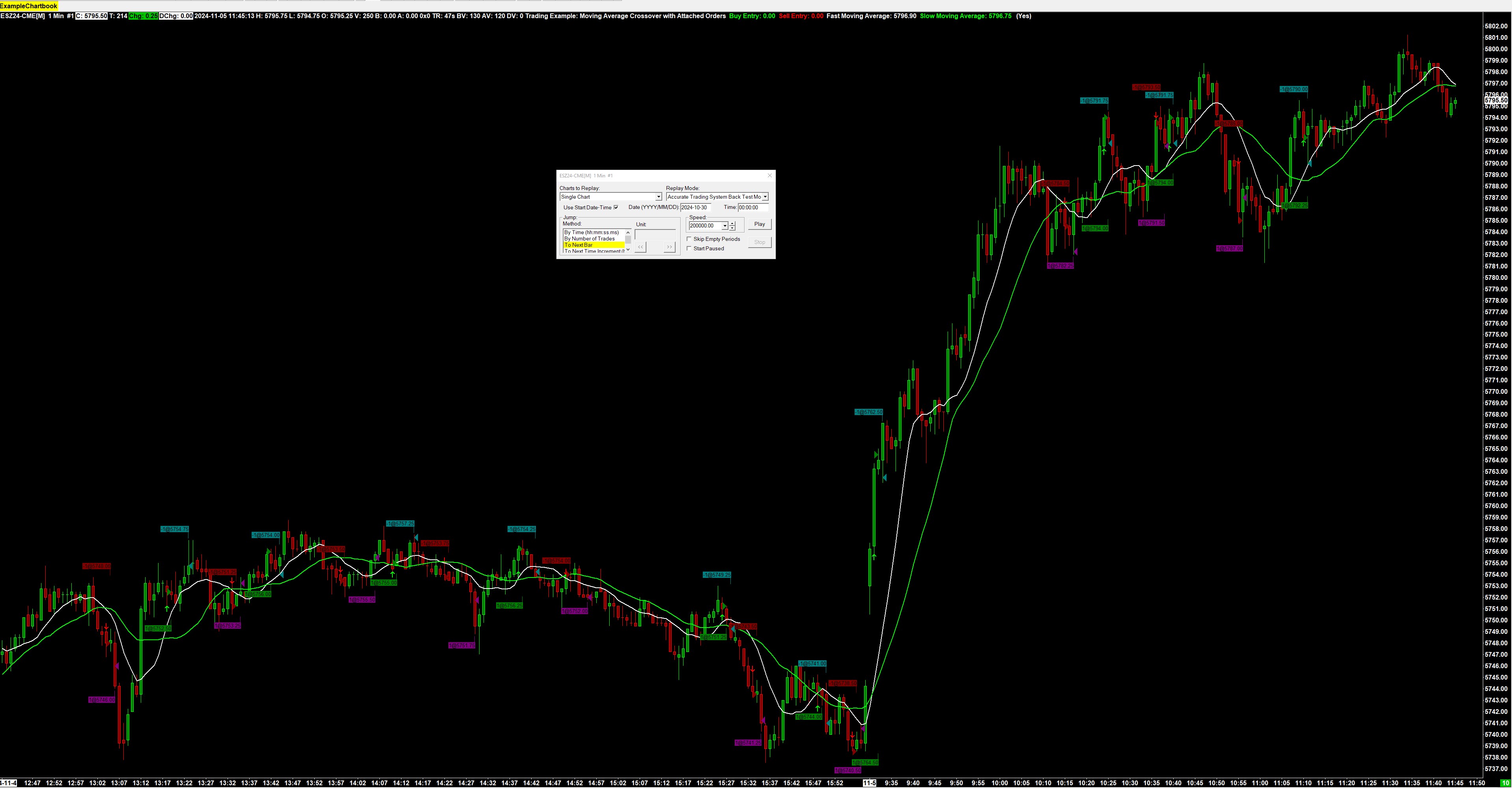 We tested just now: Trading Example: Moving Average Crossover with Attached Orders Here is what we see at a portion of the chart: https://www.sierrachart.com/image.php?Image=1725887452256.png We did not observe any issues looking at some of the order fills. One thing to understand, is that the exit order which is done by an Attached Order is not going to have any arrow on the chart. You just see an order fill on its own for it. We apologize for the colors. They are not the best. One thing that we did though is we paused the back test in the current state. Maybe there is an issue, when the back test completes and then later if there is a full recalculation of the study the arrow placement is different. Then we need to examine why there is a difference in that case. We also think we are going to add a back testing speed setting. So that you can vary the speed during a back test. And make it slower to observe what is happening. Sierra Chart Support - Engineering Level Your definitive source for support. Other responses are from users. Try to keep your questions brief and to the point. Be aware of support policy: https://www.sierrachart.com/index.php?l=PostingInformation.php#GeneralInformation For the most reliable, advanced, and zero cost futures order routing, use the Teton service: Sierra Chart Teton Futures Order Routing Date Time Of Last Edit: 2024-09-09 14:06:56