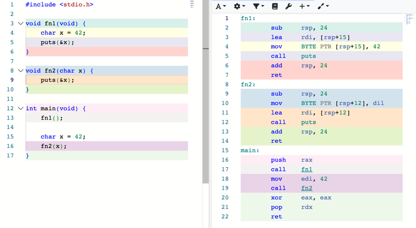 it won't have any difference at all.. both are assembling to a call instruction with the difference only being the offsets from the frame pointer (function arguments versus locals) you still have to get sc into AAA anyways pretty much all of your performance improvements will come from just drawing or other io less frequently |