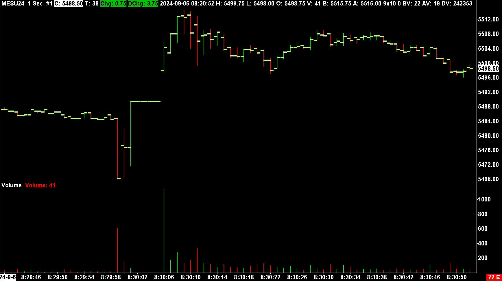 The CME halted trading for at least five seconds in the ES/MES equities: https://www.sierrachart.com/image.php?Image=1725627674361.png You can tell in this chart where there is a time period where there are flat lines and no volume. And without knowing the details of how the exchange manages this condition, they may have slowed down order matching in the subsequent period for 30 seconds or a minute as well. This may have affected other symbols as well but this is what we looked at. Sierra Chart Support - Engineering Level Your definitive source for support. Other responses are from users. Try to keep your questions brief and to the point. Be aware of support policy: https://www.sierrachart.com/index.php?l=PostingInformation.php#GeneralInformation For the most reliable, advanced, and zero cost futures order routing, use the Teton service: Sierra Chart Teton Futures Order Routing Date Time Of Last Edit: 2024-09-06 13:04:15