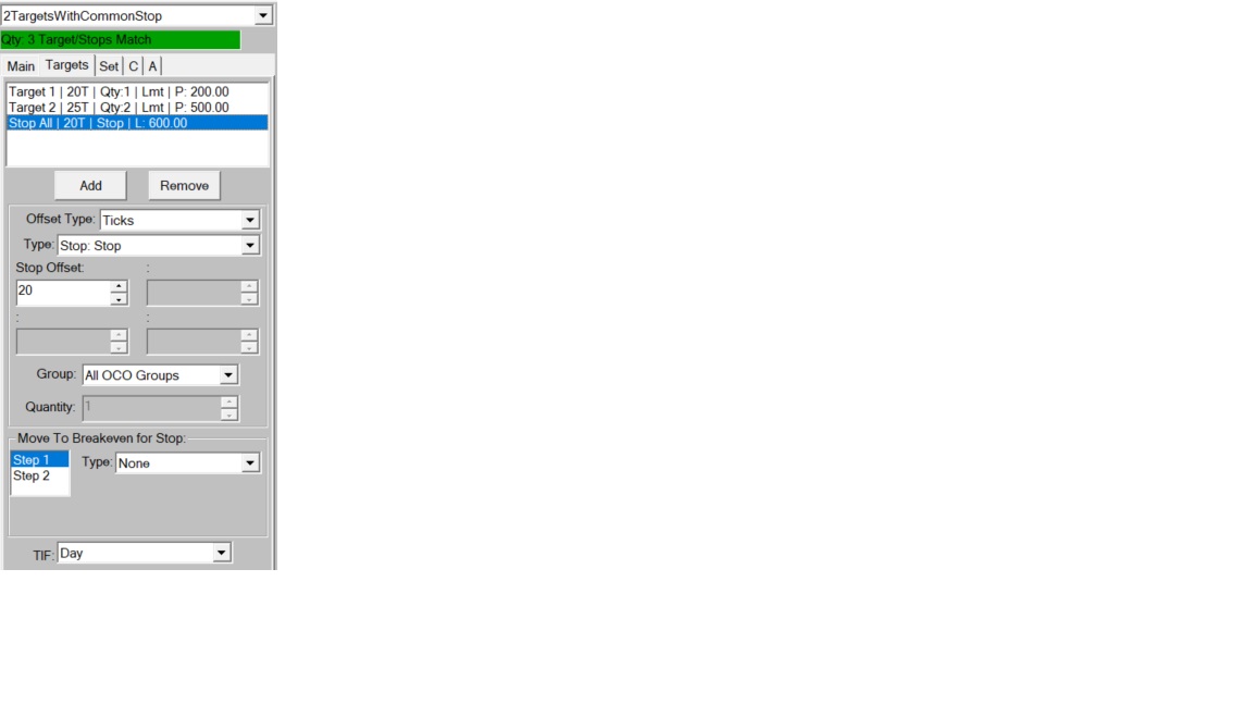 Select the "Add" button to add as many targets and/or stops as you want/need. By default, each time you select the "Add" button, it will first add a new Target and then a new Stop and continue to flip-flop as you add. But you just need to add as many entries as you need and then change the "Type" to be what you want (Target or Stop). Refer to the following: Attached Orders: Add For the most reliable, advanced, and zero cost futures order routing, use the Teton service: Sierra Chart Teton Futures Order Routing |