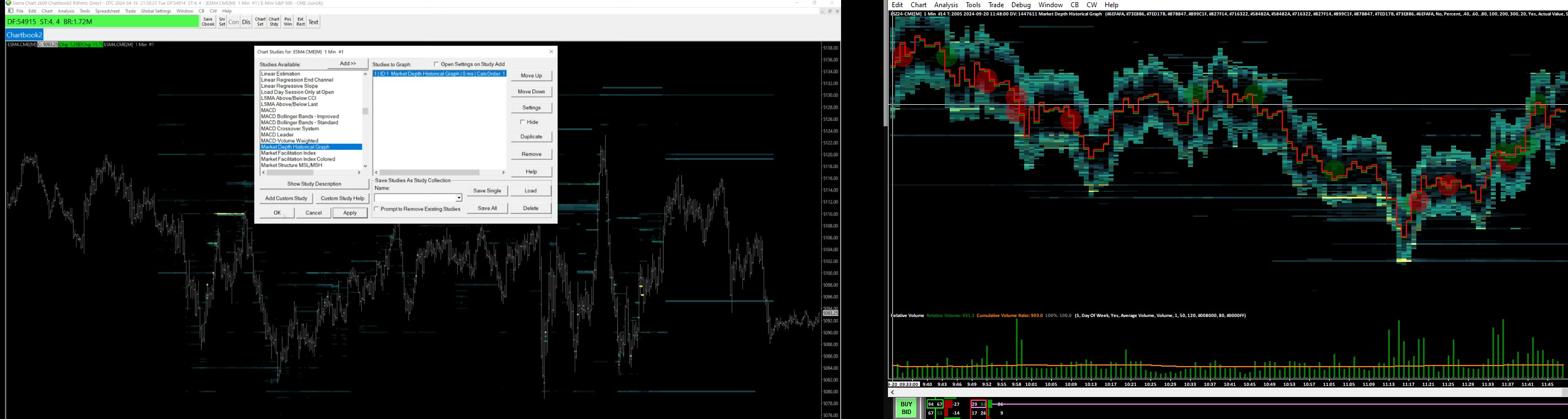 Hello John, I have been trying to setup a bookmap style heatmap but I'm having trouble getting rid of the "inventory clound" surrounding price. I would like mine (left in first attachment) to look like that on the Right. I have personally contacted the trader who built his (on the right) and yet nothing seems to be working. He adviced that I adjusted the highest / lowest quantity, which I did, yet the "inventory cloud" never went away. I was only able to attach the first page of the Study Settings since I am only able to send three pics. Regards. Date Time Of Last Edit: 2024-09-21 06:50:00
