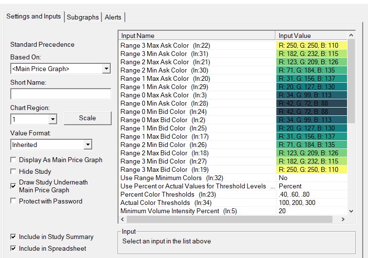 Based on the last image you provied, our guess is the setting you have for "Color Values Greater than Highest Value for Coloring". Set this to "No" and your chart will look more like what you are wanting. But, this is a complex study with a lot of inputs, so it's hard for us to say exactly what to do. For the most reliable, advanced, and zero cost futures order routing, use the Teton service: Sierra Chart Teton Futures Order Routing |