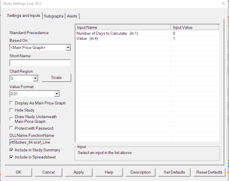 I have been trying to find the Source Code for the Line study. A picture of the line study settings form is attached. I want to add the ability to draw a line at the bar Low price at a specific time. Date Time Of Last Edit: 2024-10-06 16:49:54