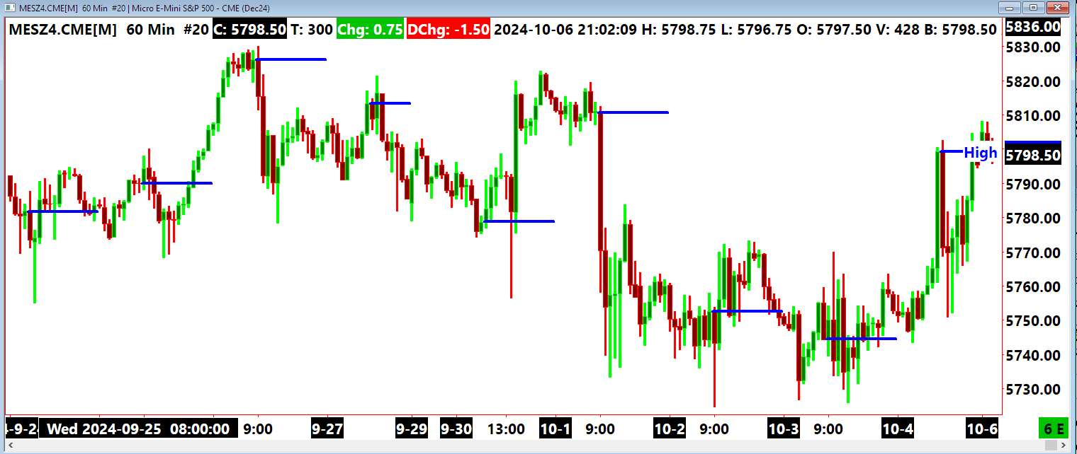 The High/Low for Time Period - Extended study gives me what I need. I set the start time and end time the same. Set the input data high and input data low the same. I hid the low subgraph. That works perfectly. But I can't get the stair step line to extend into the next day and beyond. Any thoughts on that from anyone? I want to be able to see the previous price lines extended to the right edge of my chart going back days and even months. Screenshot attached Date Time Of Last Edit: 2024-10-07 01:04:12