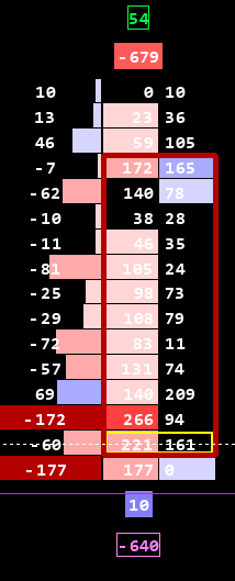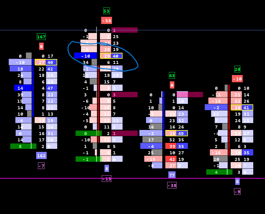 With diagonal delta the dominant side makes no sense to me. "Negative values do not necessarily mean that the bid is dominant, the diagonal Ask could still be larger at that level" that is the reason dominant side makes no sense to me. Specially at the POC you get misleading readings, because usally both sides at this level are dominant. See attached file, the bid side 156 to ask side 297 is ignorde but it is a positive delta of 141. When price is moving fast you would miss this information. I am just looking for a the + or - value of the diagonal delta a each level from the bid side.