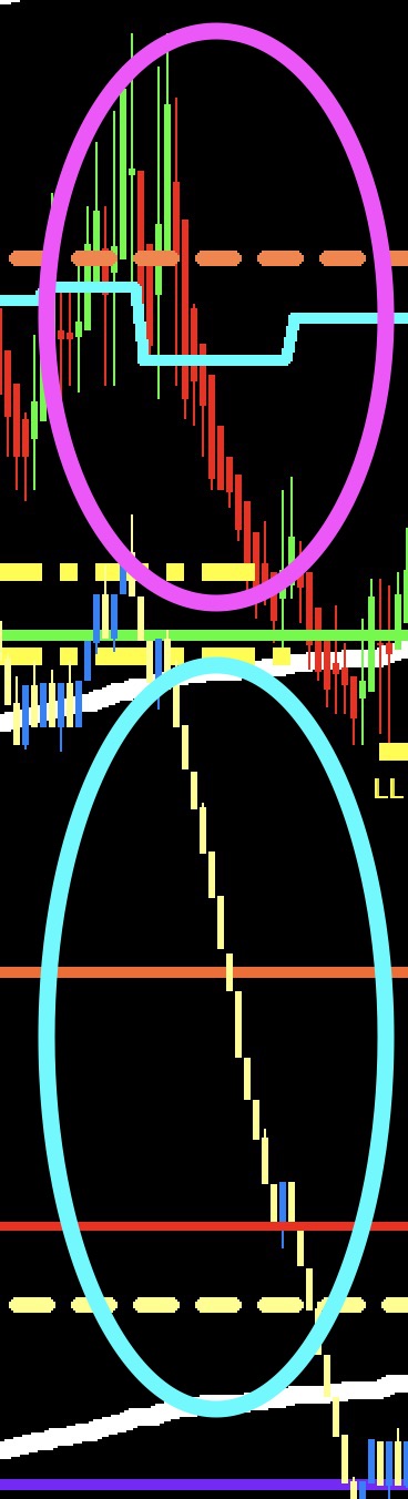 Sorry John, We missed something that I mentioned originally! I want the bars that are gonna be determined, to be the Cumulative Delta Volume Bars study on the chart and NOT the Delta Volume Bars...BECAUSE I am using Heikin Ashe and NOT candlestick bars. And Heikin Ashe wont work because of the way they are formulated. So can we change that part of the formula to be for Cum Delta volume bars please??? ID:9, Open=SG1, High=SG2, Low=SG3, Close=SG4 And the speed part of the formula will be for the Cum Delta Vol bars too! NOTE: From the screenshot attached you can see that the volume comes in much better and earlier on the Cum Delta Volume bars in the Blue circle, than the messy Heikin Ashe Bars in the pink circle which are very choppy at the same area! Thanks! Date Time Of Last Edit: 2024-11-26 22:36:49