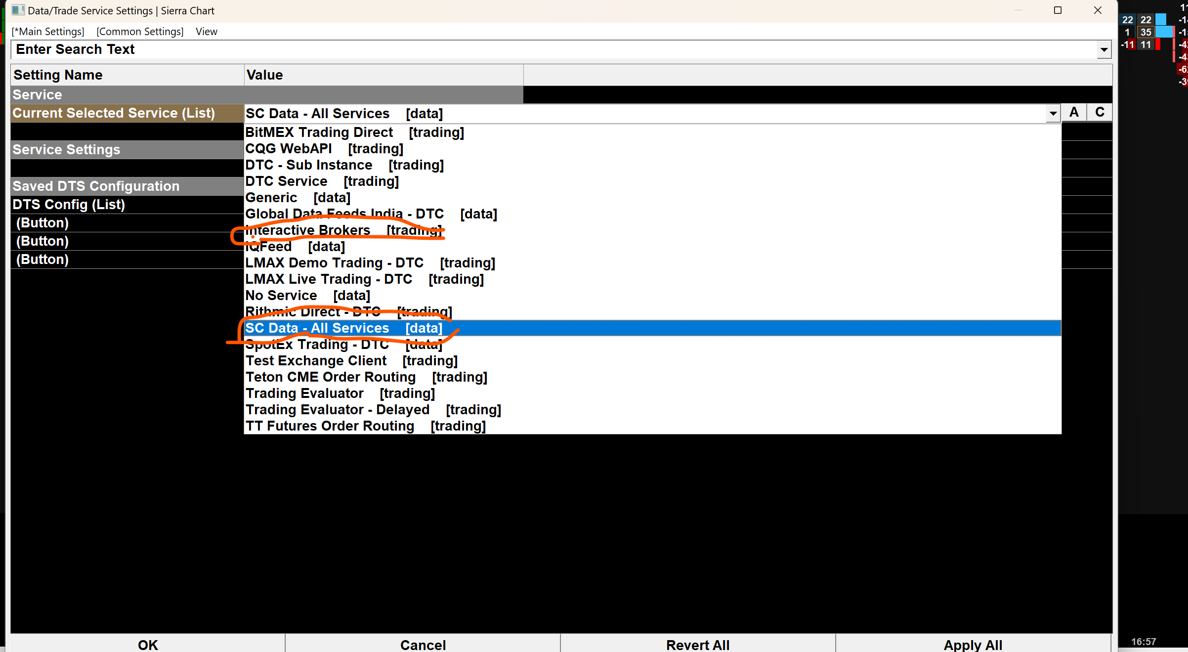 Thats fantastic news, sounds like a simple fix. Agreements Signed accordingly! (see screenshot).. Also, going forward, do i select "Interactive Brokers" or "SC Data - All Services" in the Date Service Settings? (see 2nd screenshot) |