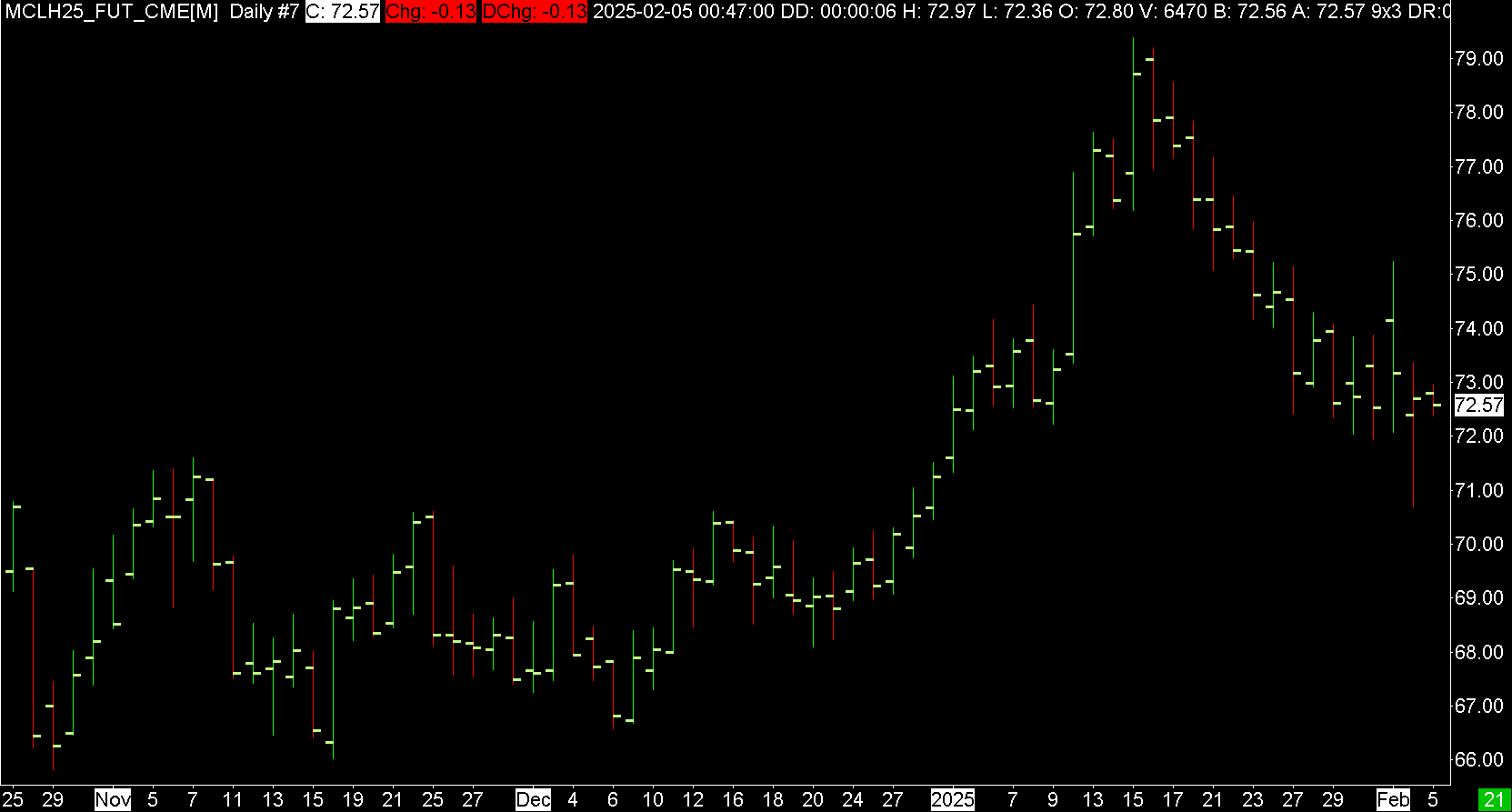 For today, this has happened to some of my NYMEX symbols. I've attached a copy of the MCL (both daily historical & intraday data are problematic). FYI, the problem is also present for PL (Daily historical is fine, but intraday data are problematic). Date Time Of Last Edit: 2025-02-05 03:43:07