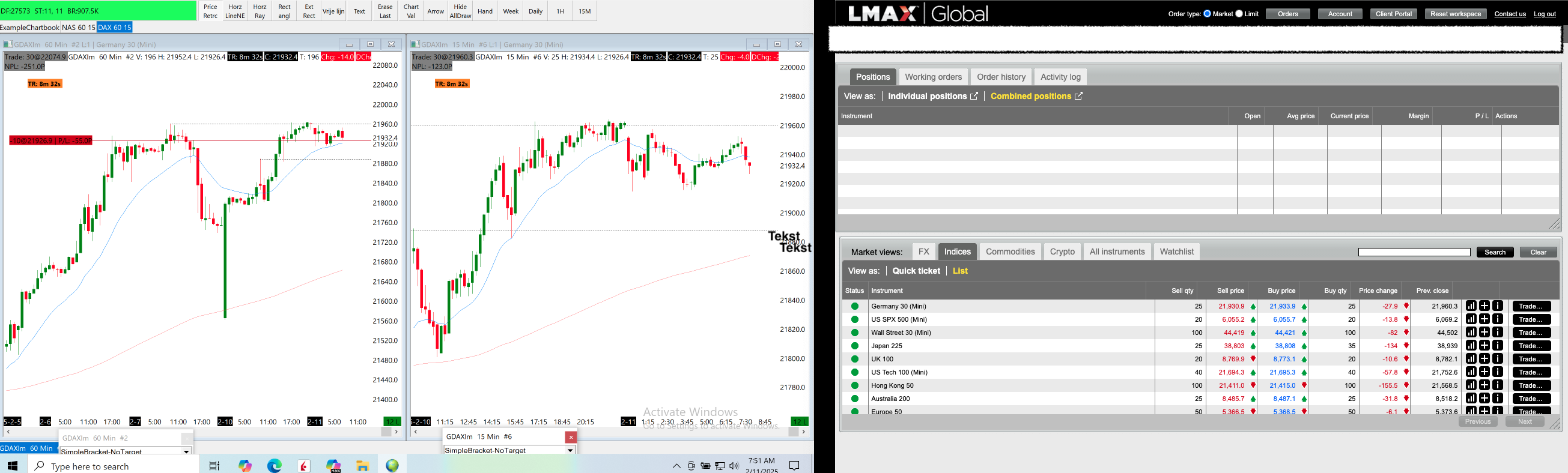 Hello, Situation is: a 1 DAXm contract order appeared in Sierra out of thin air. By the way, don't know whether it is relevant but this happened after I switched from the 1 hr timeframe to the daily timeframe and back again to the 1 hr timeframe. I checked the order in my broker screen (see attached screenshot) but there it was not visible. So I thought is probably not a "real" order. When I closed the order in Sierra by flattening all positions, it resulted in a loss (of 3 euro's) in my LMAX broker screen. LMAX refers to Sierra Chart. Can you fix this please? Thanks Thomas Date Time Of Last Edit: 2025-02-11 16:11:54