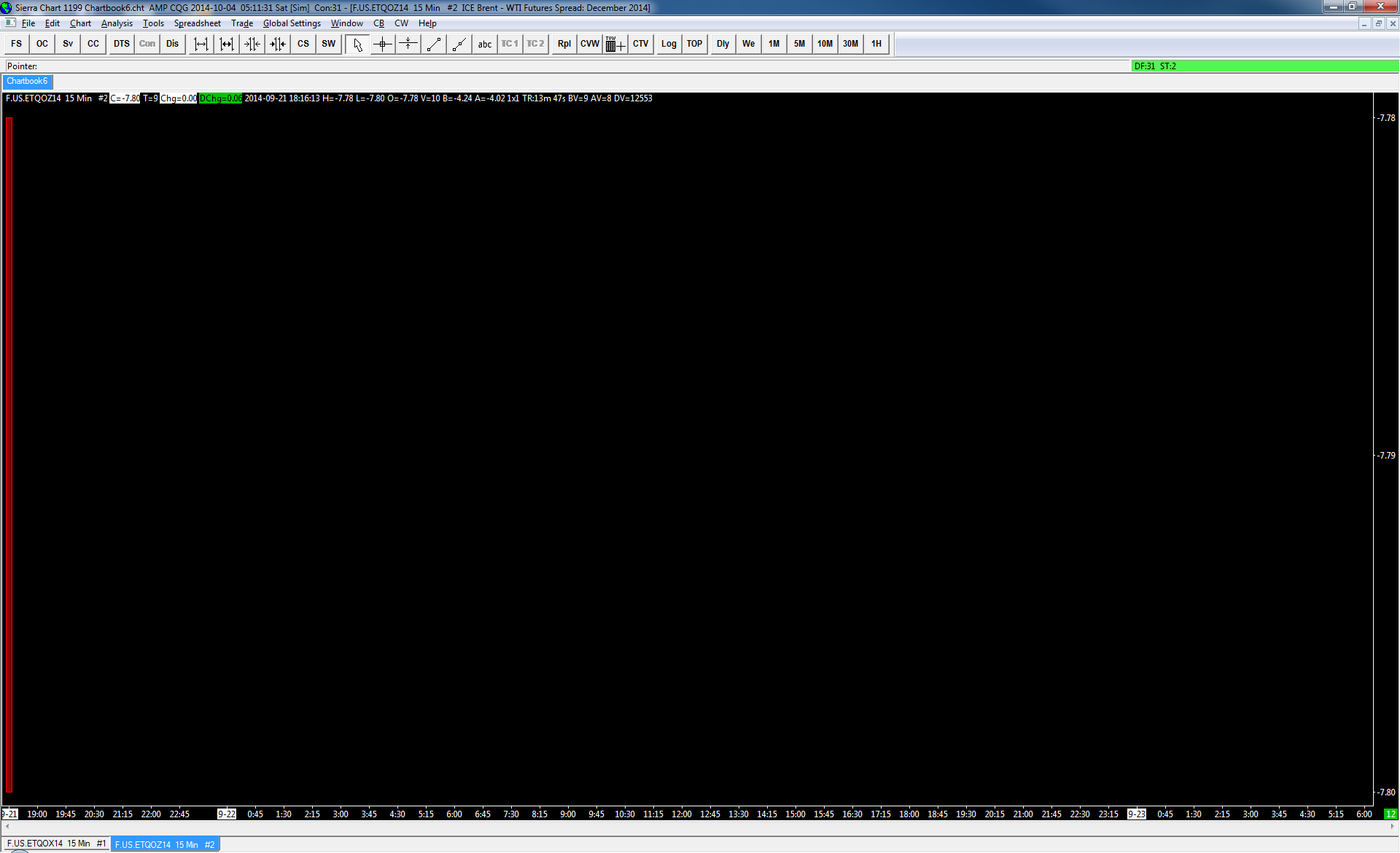@User68078 Yes, it had been working for me for some time until mid of Dec 2014 when it was discontinued. You can find the info here: Help with missing data | Post: 49393 If you want to get those particular spread charts (Brent-WTI), you can still get them by choosing symbol ETQO. But there are no historical data and in order to collect the data (e.g. for market profile) you have to run SC connected to the data-feed all the time the exchange is open. Although I did never try and do not do it. Date Time Of Last Edit: 2015-03-18 21:56:19