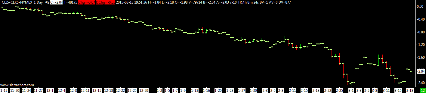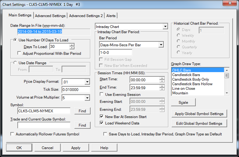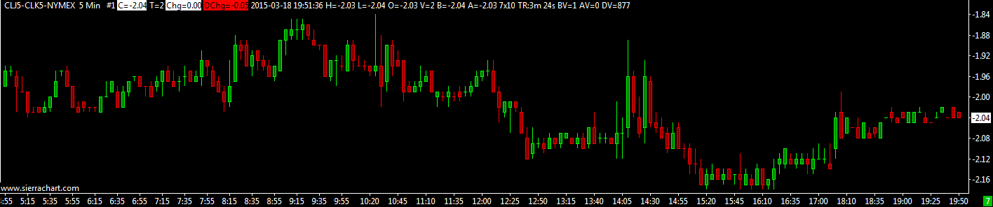 This is a response from Sierra - hence the confusion Daily spread charts using exchange traded spread data is not supported in Sierra Chart now. So does that mean "need to type in the spread symbol: CLJ5-CLK5-NYMEX" is not really an exchange traded spread data??? its a plain Sierra difference calculation? |