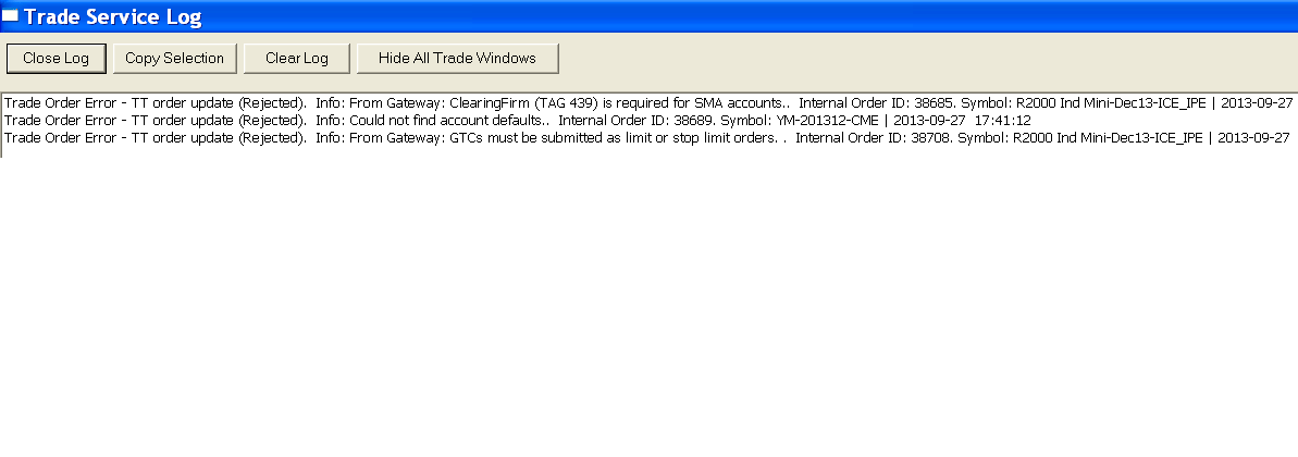 trade activtiy log window eror