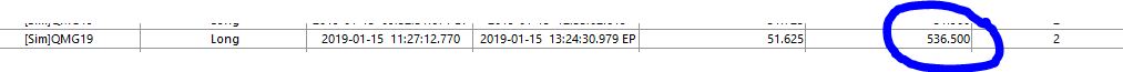 Interesting - even fills on the trading based on a bogus print. Wouldn't that be nice QMG19 long 51.625 - exit 536.500 ;) In all seriousness though, the errors when they occur are most frequently at approximately 24-27 mins past hour. Number of errors is 1-3/day. |