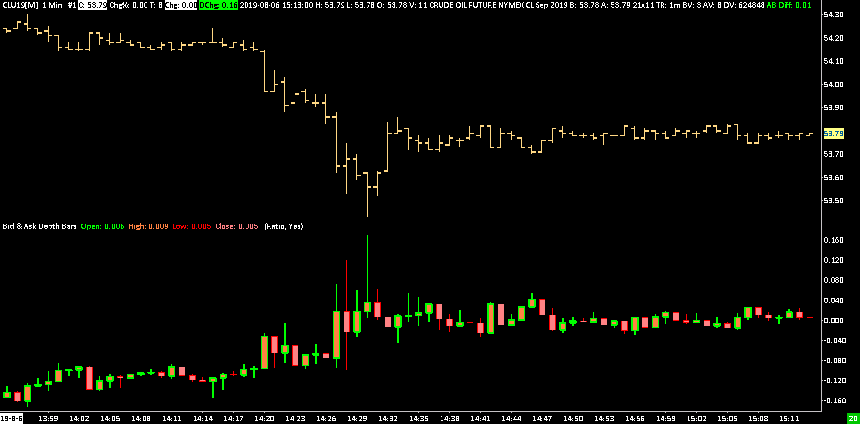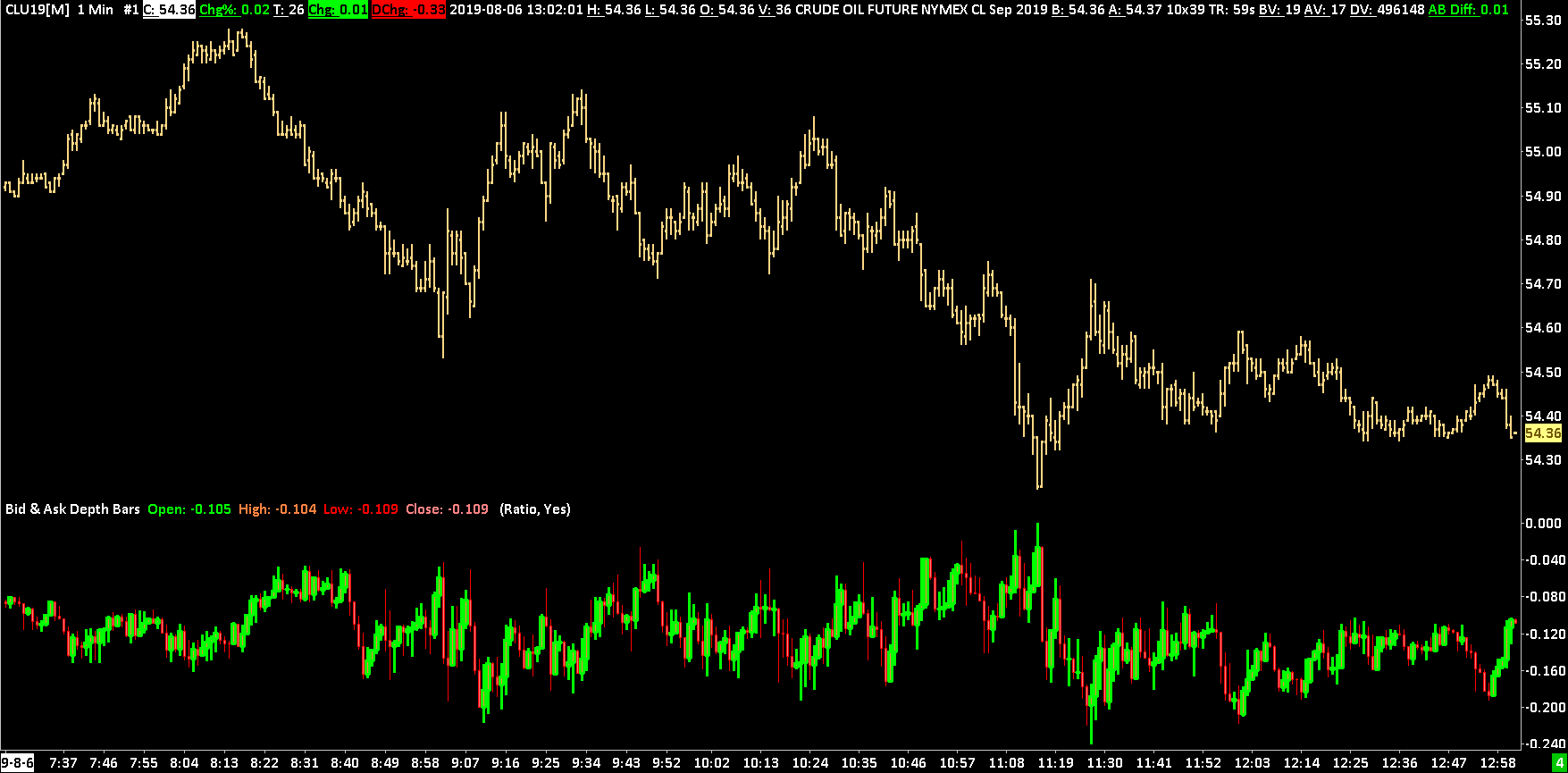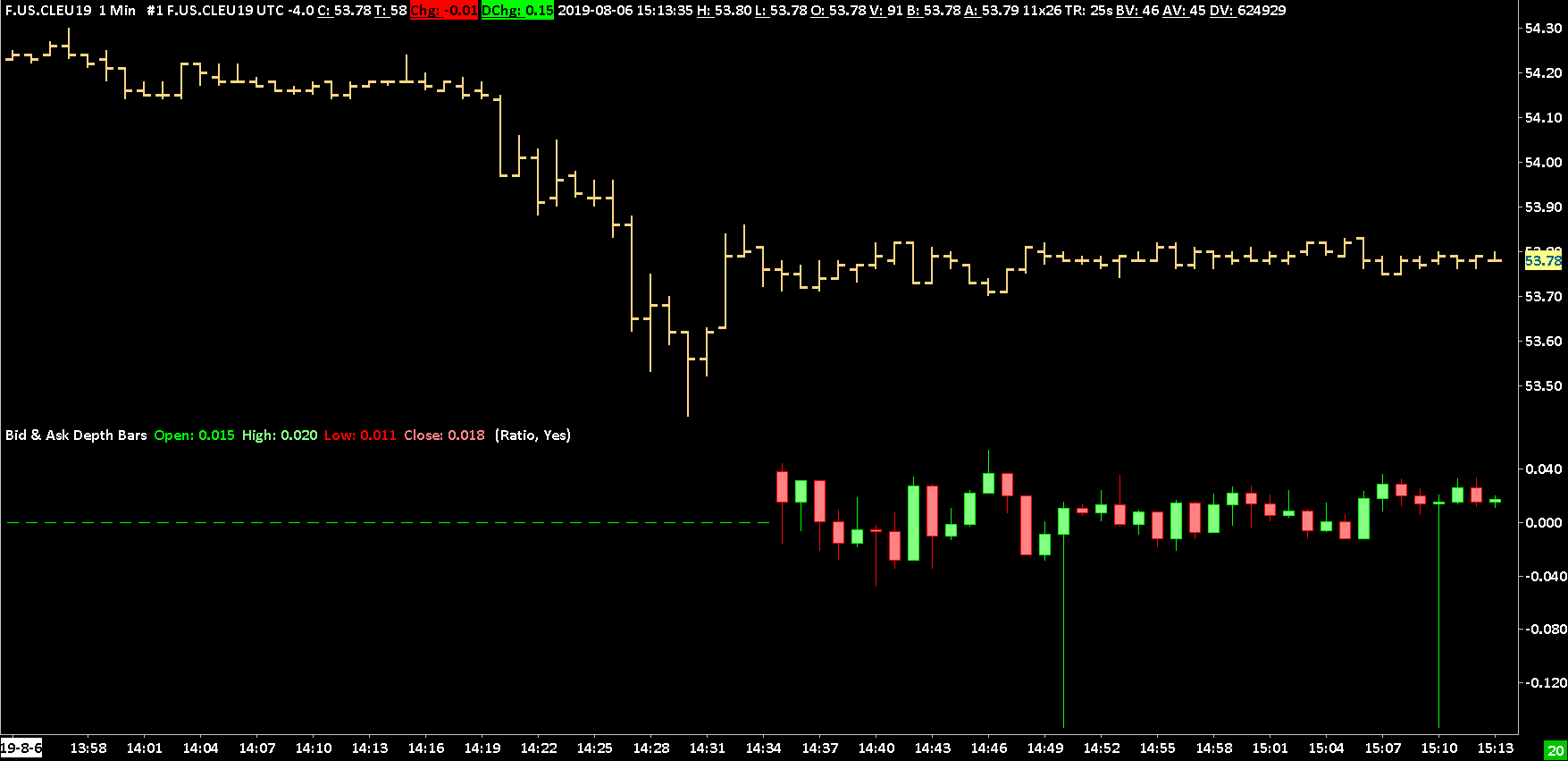 So we have started recording market depth data while using the Bid and Ask Depth Bars study, 300 levels of depth, with the SC Exchange Data Feed for CLU19 and we will post what we have tomorrow around this time.