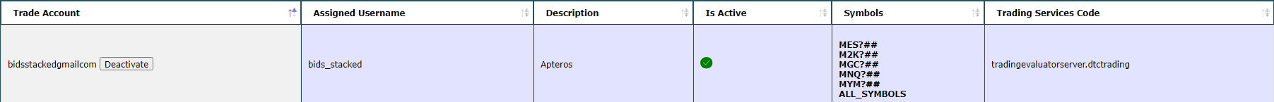 The simulated trading account is set up and already assigned to your Sierra Chart username. There is nothing more you need to do. Have you done this: After the update, in your installation of Sierra Chart which you use with this simulated trading service, select "Global Settings >> Data/Trade Service Settings". The "Current Selected Service" needs to be set to "Trading Evaluator". Set the "Service Settings >> Use Enhanced Trade Simulation Service" to Yes. Press OK. Sierra Chart Support - Engineering Level Your definitive source for support. Other responses are from users. Try to keep your questions brief and to the point. Be aware of support policy: https://www.sierrachart.com/index.php?l=PostingInformation.php#GeneralInformation For the most reliable, advanced, and zero cost futures order routing, *change* to the Teton service: Sierra Chart Teton Futures Order Routing Date Time Of Last Edit: 2021-06-07 21:08:14