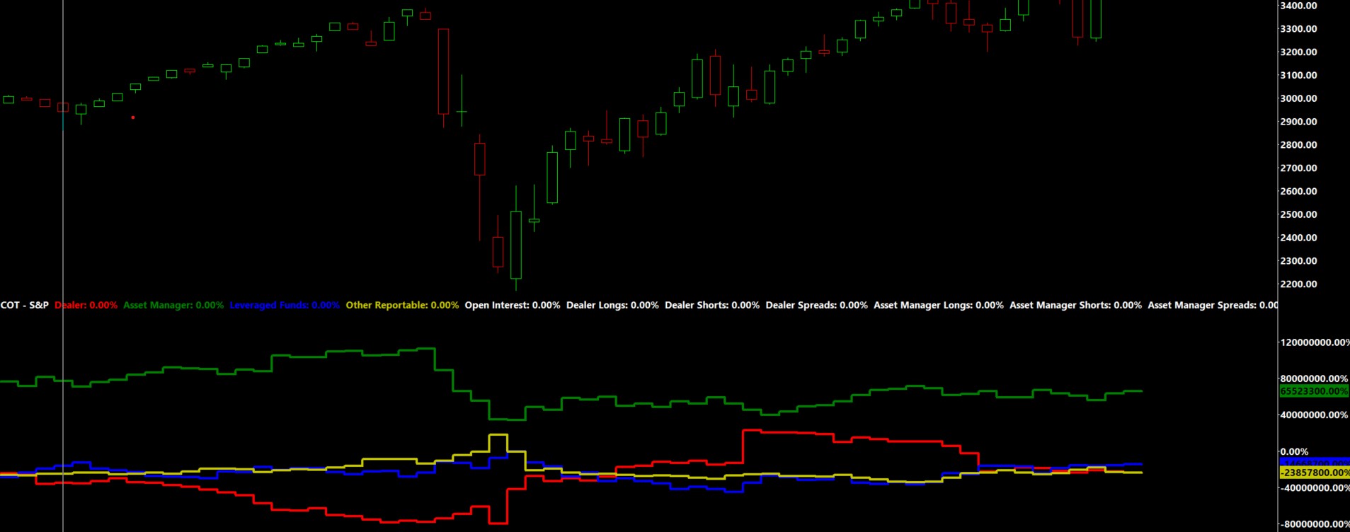Thank you guys appreciate your help. However I'm getting the lines displayed but not the values on the top part of the chart for COT. Is there anything I'm missing ? Please see the attached image |