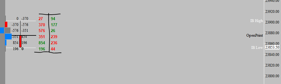 for reference on my own study the diagonal delta is the left hand column, the side by side delta is the right column where i have drawn a line in between them. I think sierra got the Diagonal part down just fine, numbers match, Im just curious why the negative symbol on the buy side of the footprint. The negative side on the sell volume side totally makes sense. Is the option already there to also do a side x side detla text display? maybe i dod not see it. Thank you again for adding this, and answering the above question whenever you can. |