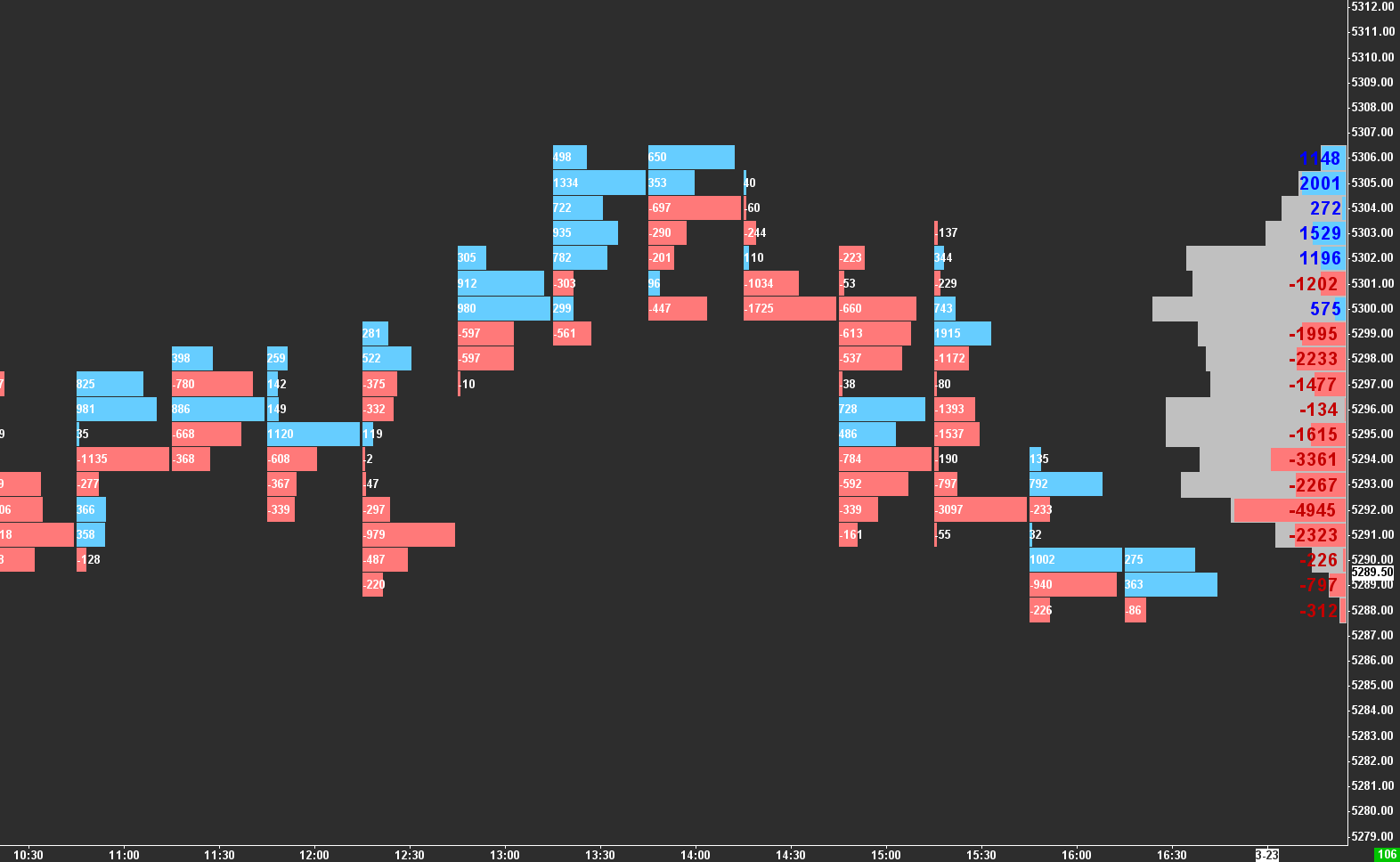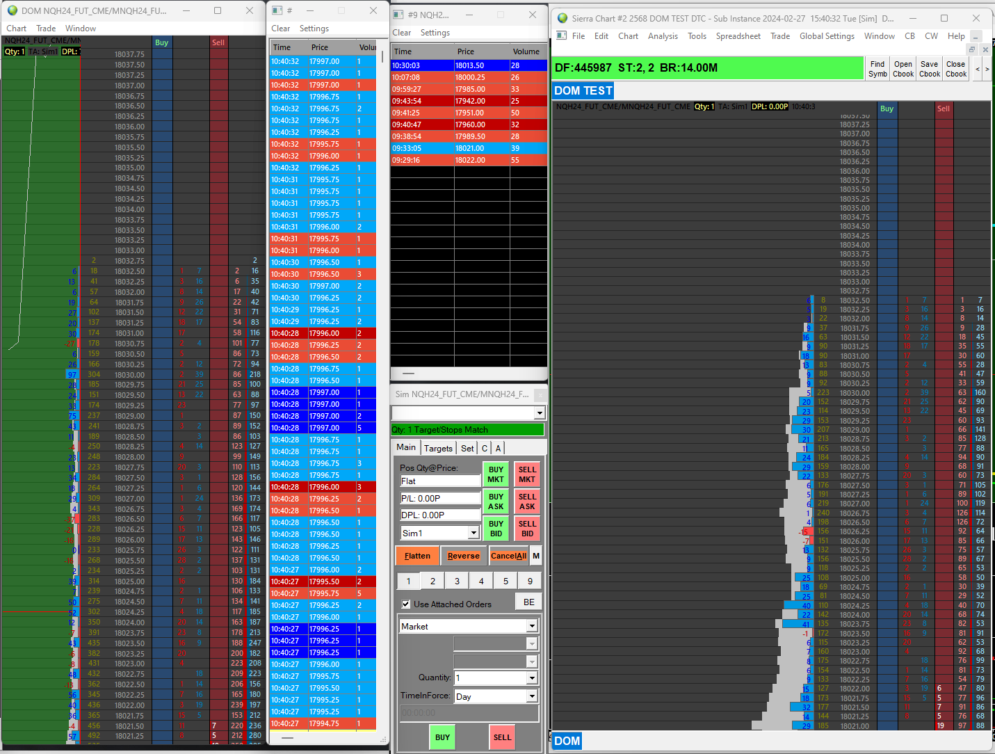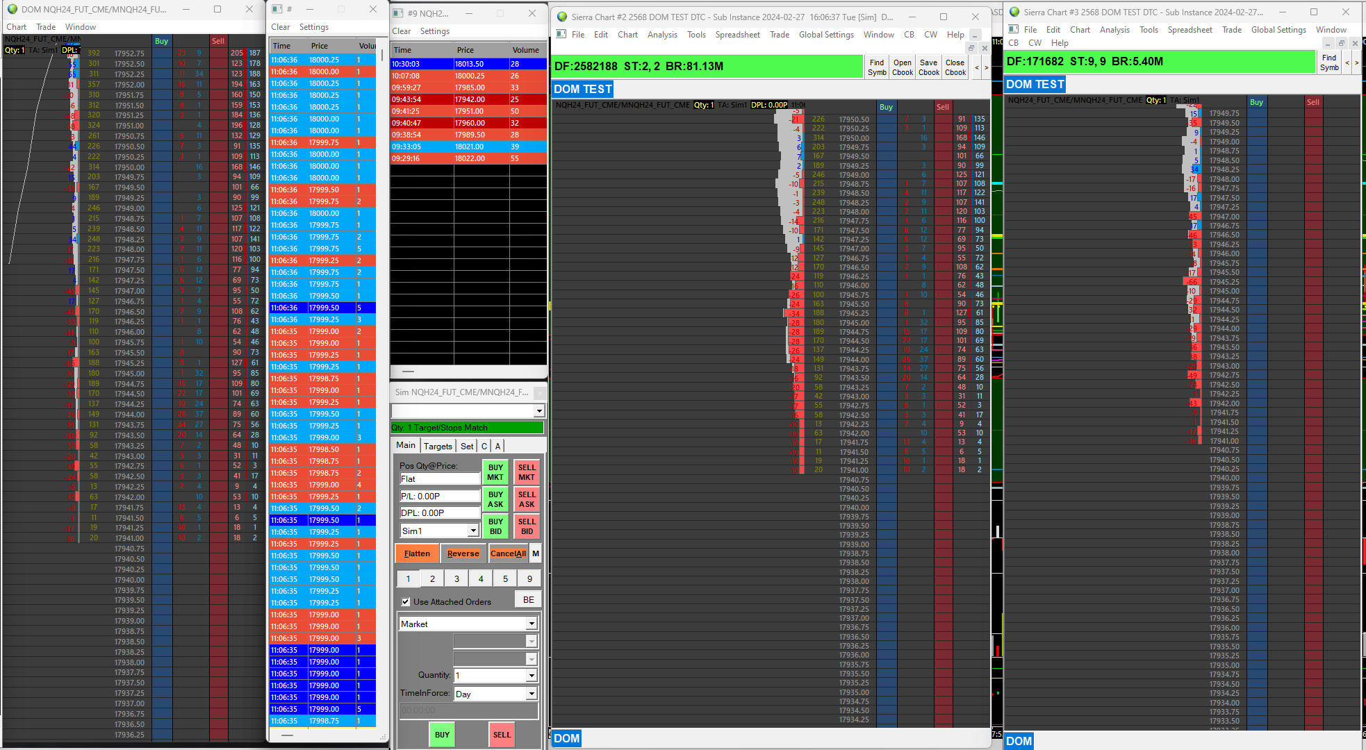 attached please find a copy of the dom i called dom test.... the dom on the right is opened in a seperate instance....you can see here at the high of the day the total volume traded is missing in the dom also you can see the total volume, the gold numbers is different than the dom on the left....which is opened in my primary chartbook...this goes on for many instances down the dom...this was a new high first time up there since 930 am and the chart time session is 9:30 - 16:59:59 on both charts....the same scenario happens at the low of the day....the delat does not make snese on the2nd instance dom...note the current bid and current ask...the last two colums match the total current volume matches...the second colum from the left...in gold...but notice the delta the first column...is completely wrong