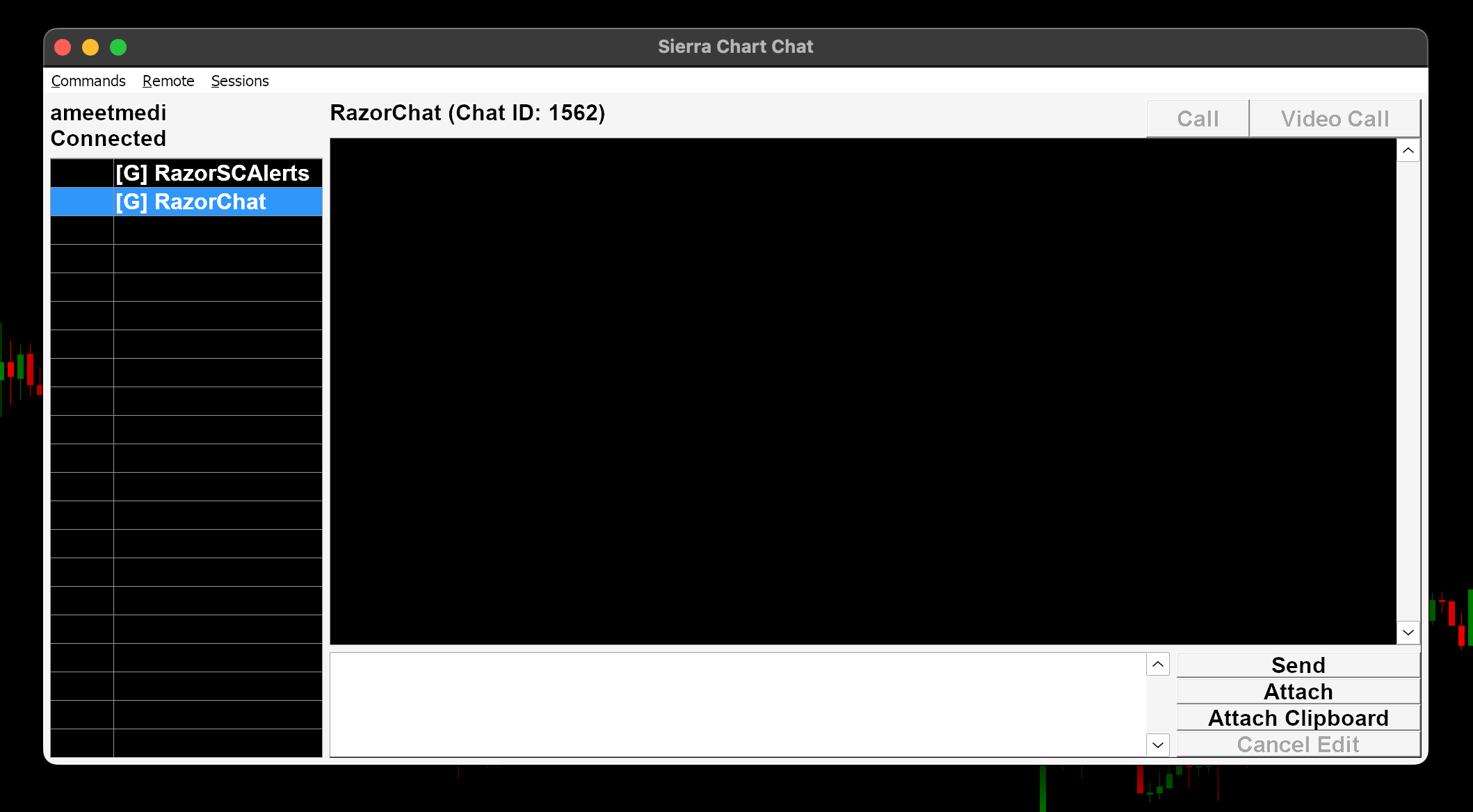 Hi @Sierra_Chart Engineering Is there a way to remove my older chat group from SC? Clicking on it, still freezes SC. I created a new chat group and I got an alert on NTFY but it still froze SC and I'm not sure if it's because of the older Chat group. Clicking on the new Group also freezes SC so I'm not sure how to get it working. I'm on latest Pre release build I downloaded just now and I have selected No for the secondary chat window as directed. |