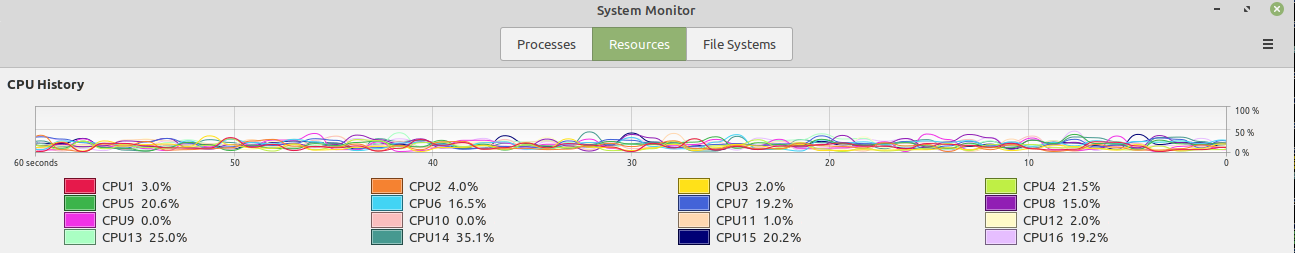 Correct, it is only historical data that is slow to download. I've tested several alternative configurations and the latest GE Egg-roll version and all respond the same with slow historical downloads. Real-time data and order routing work perfect and fast as always. Slow historical downloads are also NOT caused by CPU locks. During testing, all CPUs are all well under 20% and most in the single digits. Memory usage values below are lower due to some optimization and elimination of unused charts. Current configuration: SierraChart Version 2320 64 bit (2 instances) wine-6.19 Development Mint Linux 20.2/Cinnamon desktop Kernel 5.11.0-37 generic OpenGL X11lib: 1.7.0 AMD Ryzen 7 3800X GeForce GTX 1660 Nvidia video card w/6 GB GDDR5 and driver 460.91.03 Dual Monitors 1920X1080 60 Hz for both monitors Total System RAM: 16 Gig Memory usage: <350 Meg per instance. Total CPU Utilization: <=4% per SC instance 45 Charts, 5 instruments (ES, YM, GC, DAX, CL) Denali datafeed with MBO data CQG order routing Updated 10/15/21 Date Time Of Last Edit: 2021-10-15 22:39:51