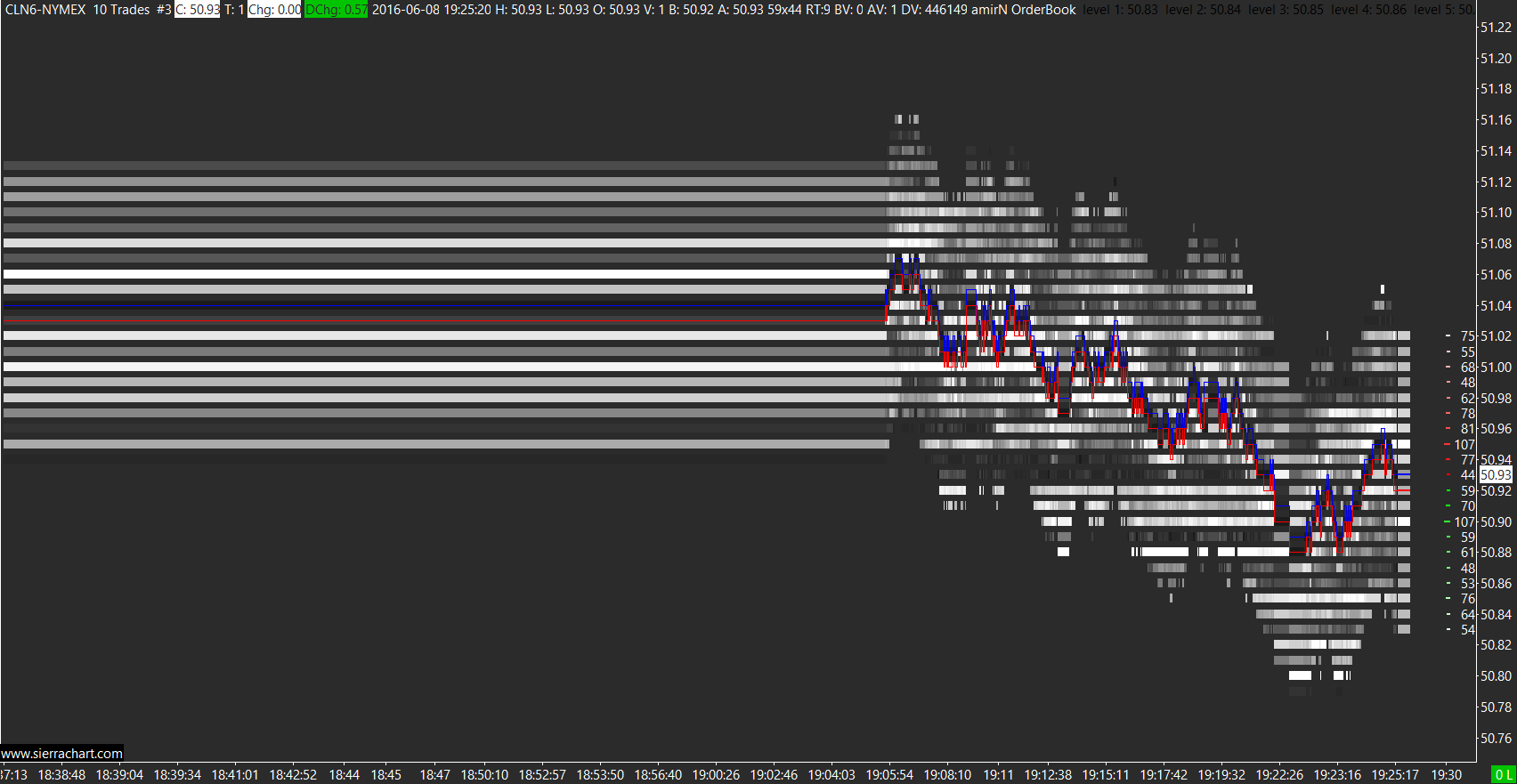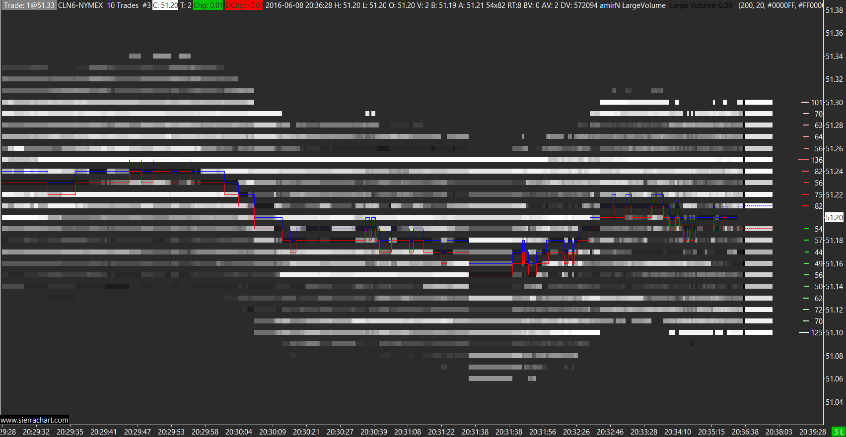 Hi Amir, firstly thank you very much for your generosity for sharing this! Please see attached picture. This is the last DLL however I am missing a lot of information referring to your picture, not sure how to get the lot sizes etc on the right like yours? I am trading CL and like to see 80 contracts and the 100 as white, what would you suggest to highlight these 100 contracts ? http://www.sierrachart.com/image.php?Image=146540672646.png |