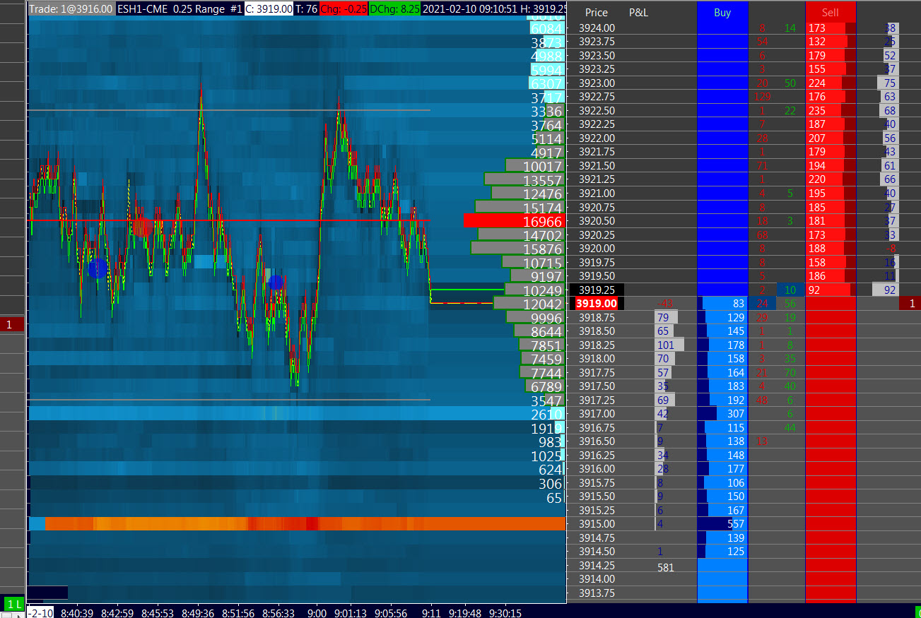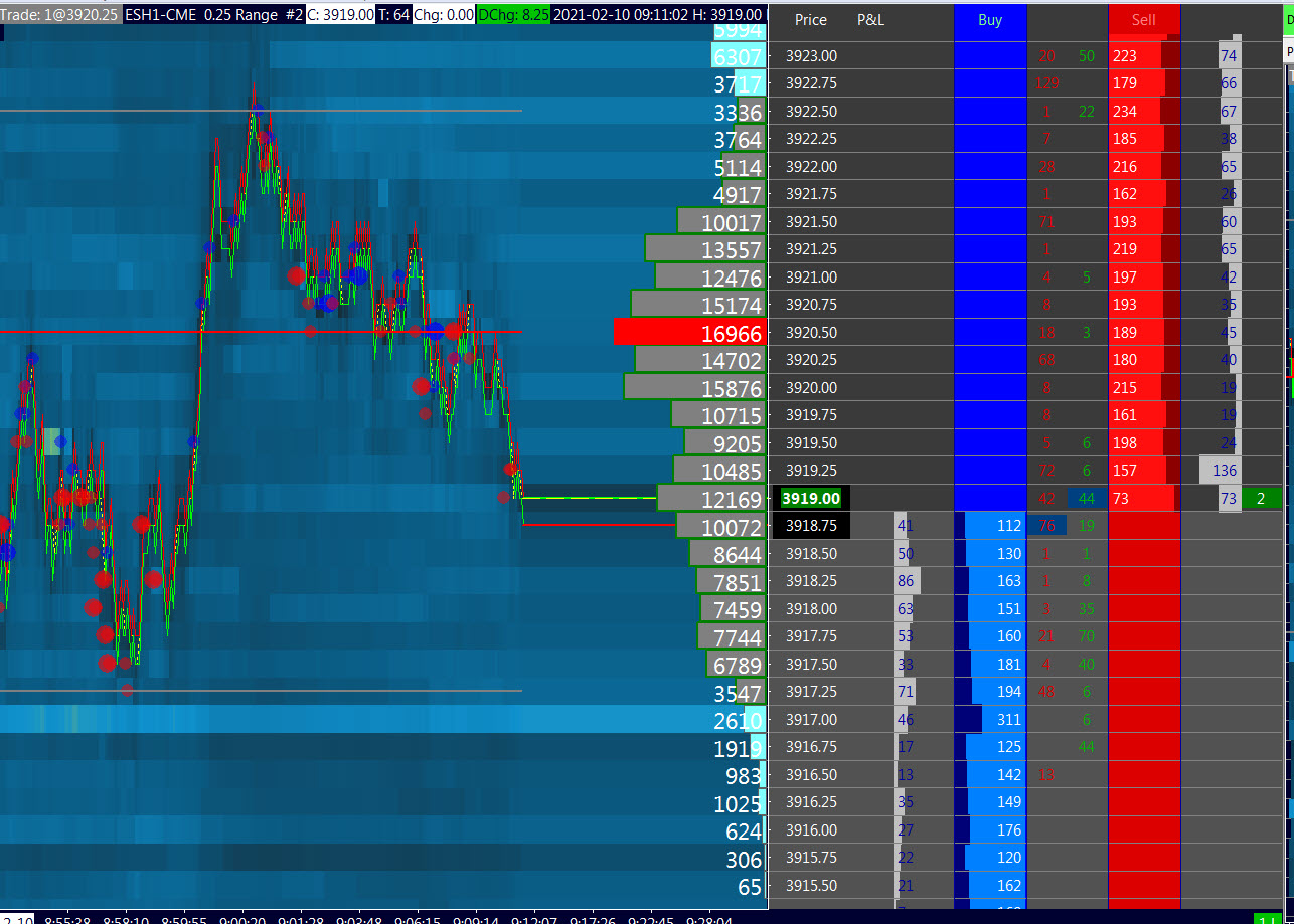conventionally it has to be the difference: ASK volume minus BID volume, so when the result is positive means more aggressive buyers and when it is negative it means more aggressive sellers. To have a Bookmap like representation, in my opinion probably an easier possibility could be to work on the Volume At Price Threshold Alert V2, (I've done the chart you see below with it but putting on more than one indicator with different setttings) just adding "Automatic Indicator Size", on this indicator there is already the Ask Volume - Bid Volume Difference... so it would be perfect and more flexible. regards |