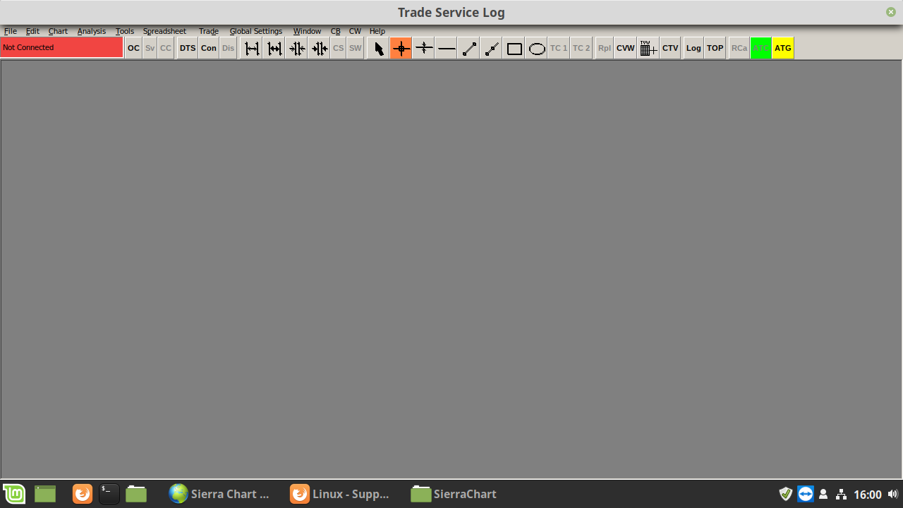 In the latest version 1941, when attempting to open the trade service log, SC creates a rectangle bar across the screen at the top rather than opens the log. I've tried Wine 4.0.1 and 4.12 and both have the same issue. There is an X on the right that allows me to close it and it happens without any charts. Not sure which version this started happening. Does anyone know if there is a way to see the trade services log outside of SC? I've looked in the various directories in SC. Ideally, it would be fixed at some point. Date Time Of Last Edit: 2019-07-06 20:05:49