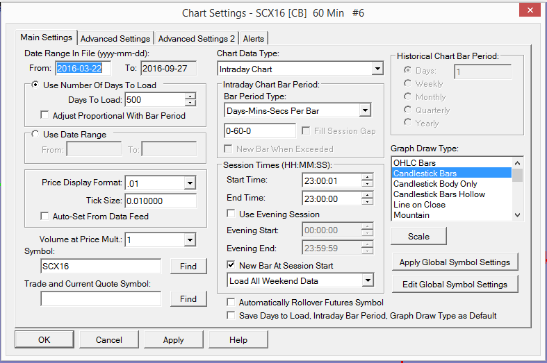 I opened a new chart of Crude Oil Brent- NYMEX (SC) But some of the chart data is missing for example, from 1st till 18th Sep 2016. I have attached the screenshot of chart and chart settings. I am using the updated version of the software.