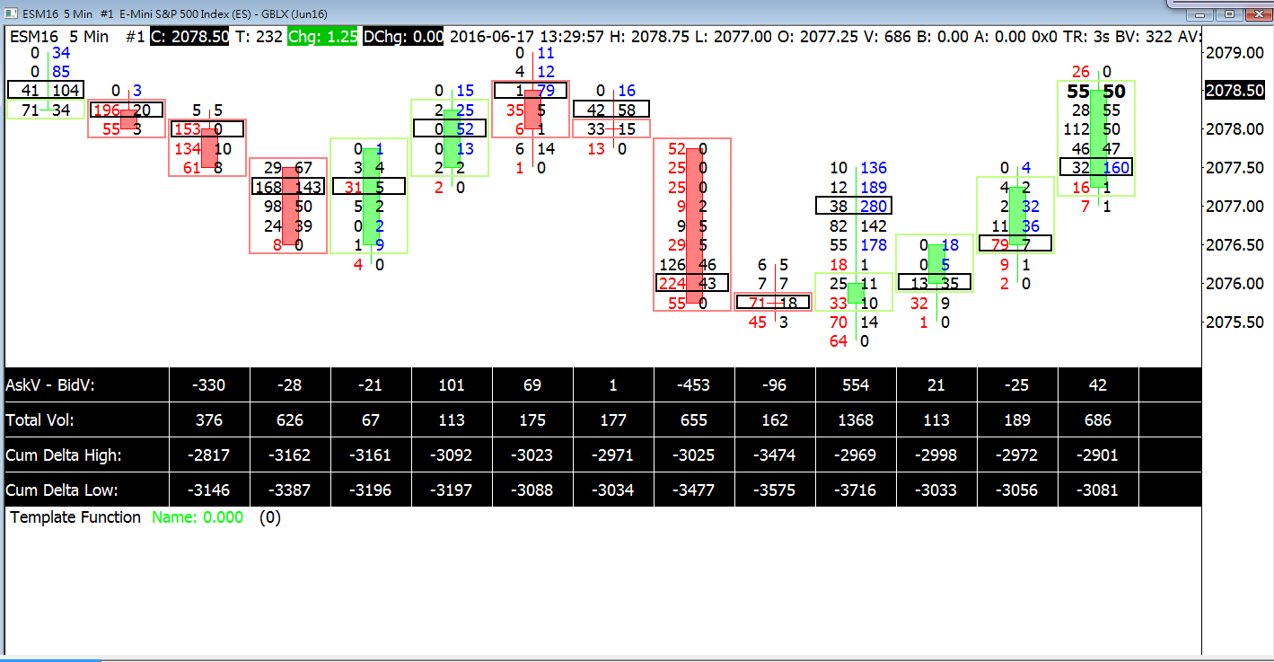 I would like to know on what wrong it is: 1) Build Custom Studies DLL 2) Select Analysis >> Studies on the menu. Press the Add Custom Study... button. Locate the name of your advanced custom studies DLL file in the list of studies. It will have the name specified in the CustomDLLName() code line. Press the plus sign (+) by it, and select the study you just made (Example: My New Study Function). Press the Add button to add the selected study to the list of studies on the chart, and press the OK button on the Chart Studies window to apply it to the chart. Your new study is now on the chart and fully calculated. 3) the Chart show nothing at all Do I place the code on the wrong place? Do you have any suggestions on what wrong it is? Thank you very much for any suggestions :> // The top of every source code file must include this line #include "sierrachart.h" // For reference, refer to this page: // Advanced Custom Study Interface and Language (ACSIL) // This line is required. Change the text within the quote // marks to what you want to name your group of custom studies. SCDLLName("Custom Study DLL") //This is the basic framework of a study function. Change the name 'TemplateFunction' to what you require. SCSFExport scsf_TemplateFunction(SCStudyInterfaceRef sc) { // Section 1 - Set the configuration variables and defaults if (sc.SetDefaults) { sc.GraphName = "Template Function"; // During development set this flag to 1, so the DLL can be rebuilt without restarting Sierra Chart. When development is completed, set it to 0 to improve performance. sc.FreeDLL = 1; sc.AutoLoop = 1; //Automatic looping is enabled. sc.Subgraph[0].Name = "Name"; sc.Subgraph[0].DrawStyle = DRAWSTYLE_LINE; sc.Subgraph[0].PrimaryColor = RGB (0, 255, 0); sc.Input[0].Name = "Float Input"; sc.Input[0].SetFloat(0.0f); return; } // Section 2 - Do data processing here // Get the sum of the volumes from all of the prices at this bar by using sc.VolumeAtPriceForBars->GetNextHigherVAPElement() unsigned int TotalVolume = 0; int CurrentVAPPriceInTicks = INT_MIN ; // This will be incremented from the lowest to highest price tick in the bar const s_VolumeAtPriceV2 *p_VolumeAtPrice; while (sc.VolumeAtPriceForBars->GetNextHigherVAPElement(sc.Index, CurrentVAPPriceInTicks, &p_VolumeAtPrice)) { TotalVolume += p_VolumeAtPrice->Volume; //Calculate the price. This requires multiplying p_VolumeAtPrice->PriceInTicks by the tick size float Price = p_VolumeAtPrice->PriceInTicks * sc.TickSize; //Other members available: //p_VolumeAtPrice->AskVolume; //p_VolumeAtPrice->BidVolume; //p_VolumeAtPrice->NumberOfTrades; } } Date Time Of Last Edit: 2016-09-28 07:55:36
