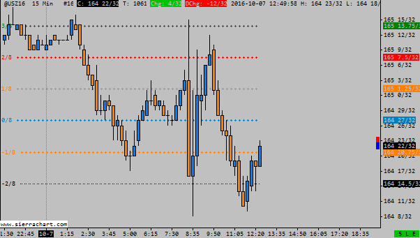 Hi, may I ask for some enhancements/additional features to be added to the MurreyMath indicator? Compared to the official MM application the horizontal lines (MML) are drawn correctly but the following parts are a bit confusing, can you please check and let me know if they can be implemented: 1. Officially the square width (frame size) is always the multiple of 4: the official values are: 4, 8, 16, 32, 64, 128, 256 and 512. Would it be possible to be able to select these values in the settings from a dropdown list instead of typing them manually? 2. There is a frame multiplier in the original calculation what determines the number of bars to look back to determine the High and Low extremes what is used to place the price into a frame. This multiplier in the official software is 1.5, so the actual frame sizes (lookback periods) are 6 (4), 12 (8), 24 (16), etc. Does the calculation of the Sierra script uses this? 3. There is an anomaly/rule in the original MurreyMath calculation, called Frame Shift what can basically happen in two situations: A). Contraction: the price extremes in the last n bar (frame size/square width) changes because of there are new bars and there are new H/L values (usually smaller range) and the frame (square) contracts (line distances decrease). As I found this is correctly done by the Sierra script. B). Price shifts to a new frame when the price ticks above or below the -2/8 and +2/8 lines. At this situation the frame/square recalculates based on the new extremes. The official MurreyMath software uses the same logic (new frame on tick above below +2/8 or -2/8). I found that this doesn't work this way in Sierra script. Can you modify it to calculate/draw new frame at violation of -2/8 and +2/8? Because of this frame shift, the levels below -2/8 and above +2/8 are unnecessary. Please see this chart where the frame does not shift at -2/8: http://www.sierrachart.com/image.php?Image=1475859021273.png 4. Is it possible to use the 'round to tick' feature with the horizontal Murrey lines? I have the full MurreyMath method coded for Ninja, Multicharts and eSignal what includes all the Murrey tools (time/speed/momentum lines, circles) + additional features including scanner functions, etc. Can you please let me know if it can be implemented in Sierra? That would be fantastic because that would eliminate the need to use applications other than SC. Thanks in advance! |