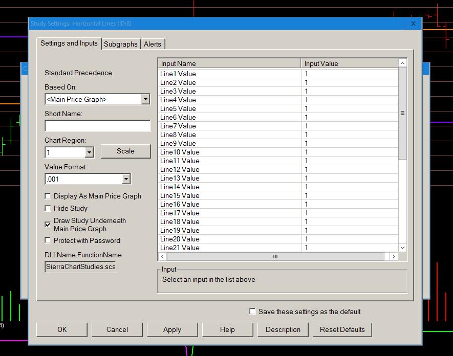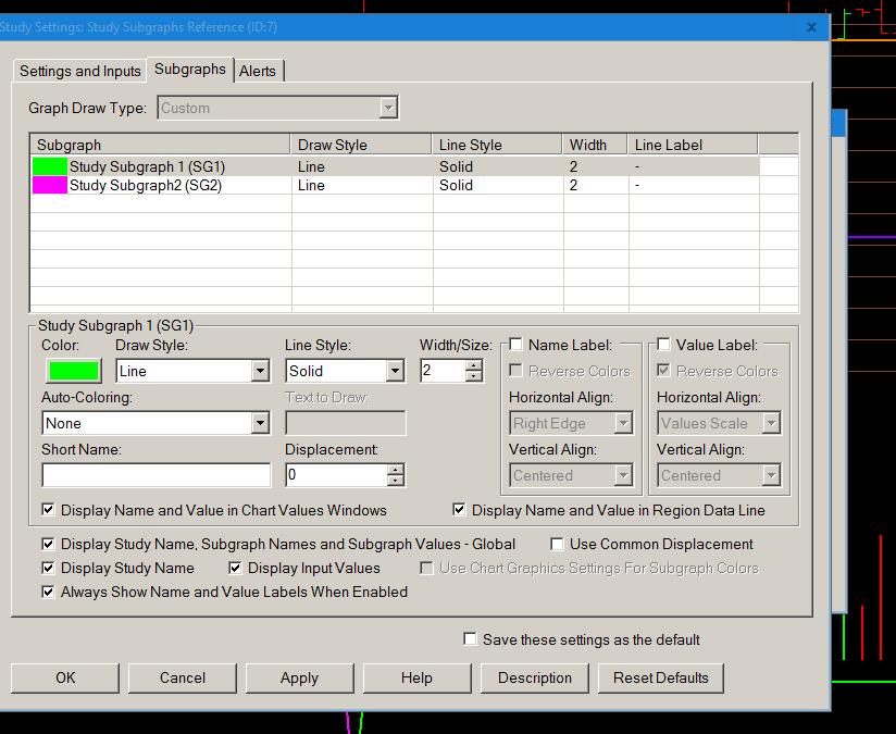 Hi, Here is a snapshot of my settings on the Study Subgraph Reference and Horizontal Lines. I have gone through your instructions multiple times and just cant seem to make any headway. Comments appreciated, Cj |