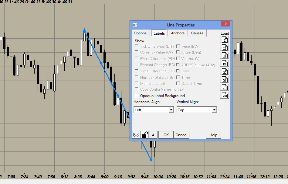 http://www.sierrachart.com/image.php?Image=1479502674267.png I am wanting to use the options on line to so end point values and price differences. All the fields are greyed out |
